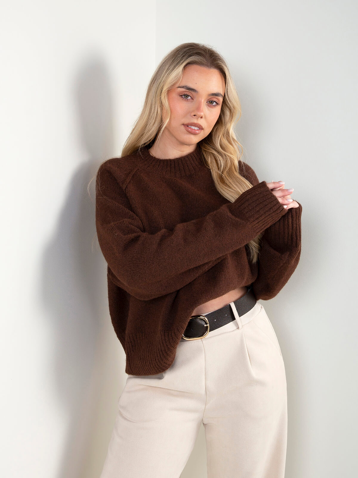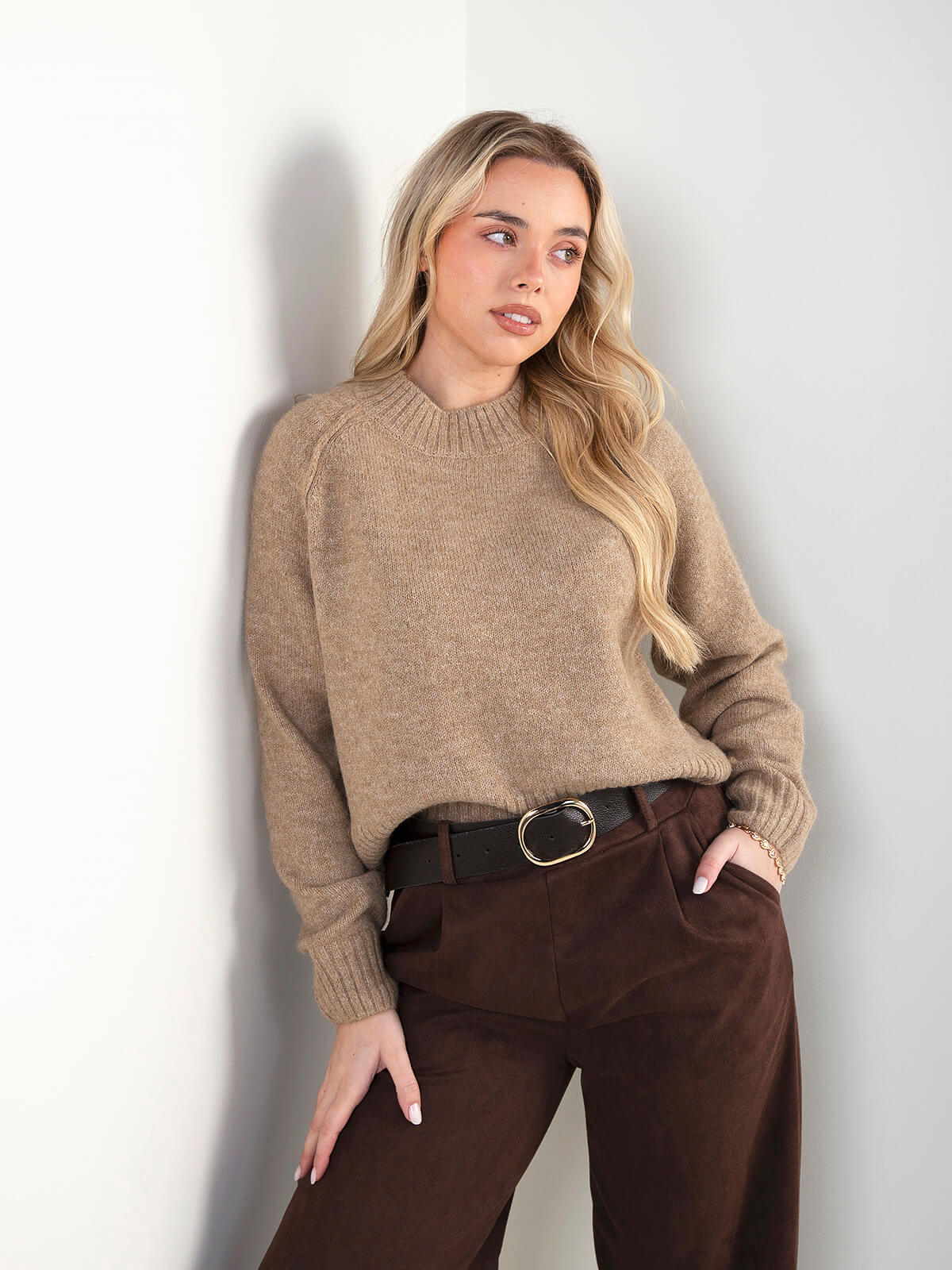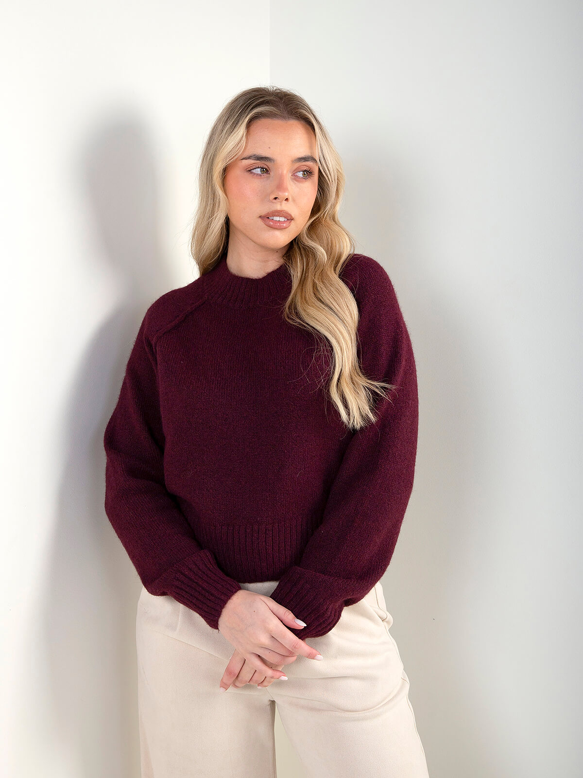 Camisola em malha lisa, com gola perkins e acabamentos canelados. Um essencial de inverno, confortável e fácil de conjugar, perfeito para looks simples mas cuidados.