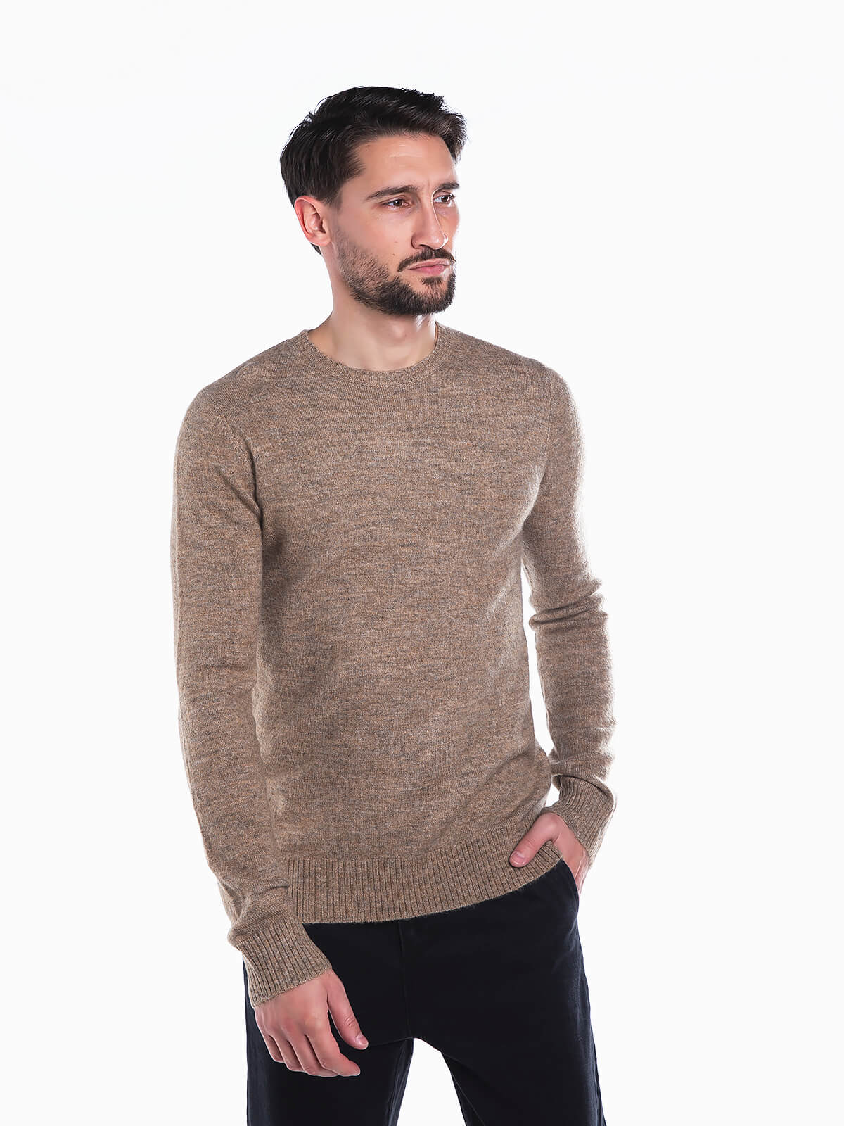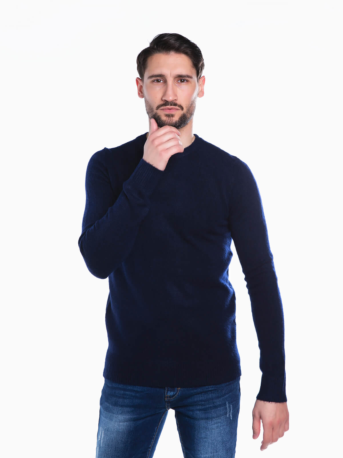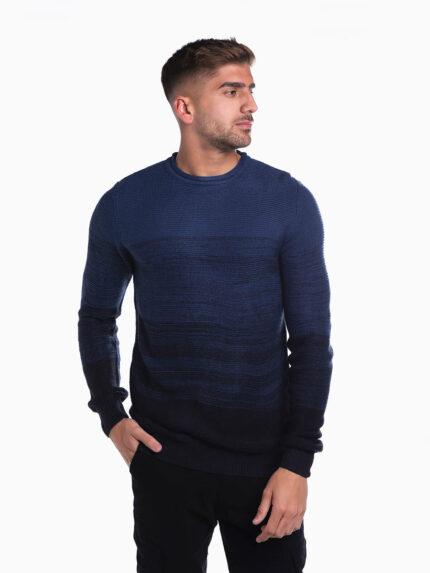 Camisola de malha regular fit para homem. Camisola em malha fina de manga comprida. Gola redonda. Acabamentos em nervuras.