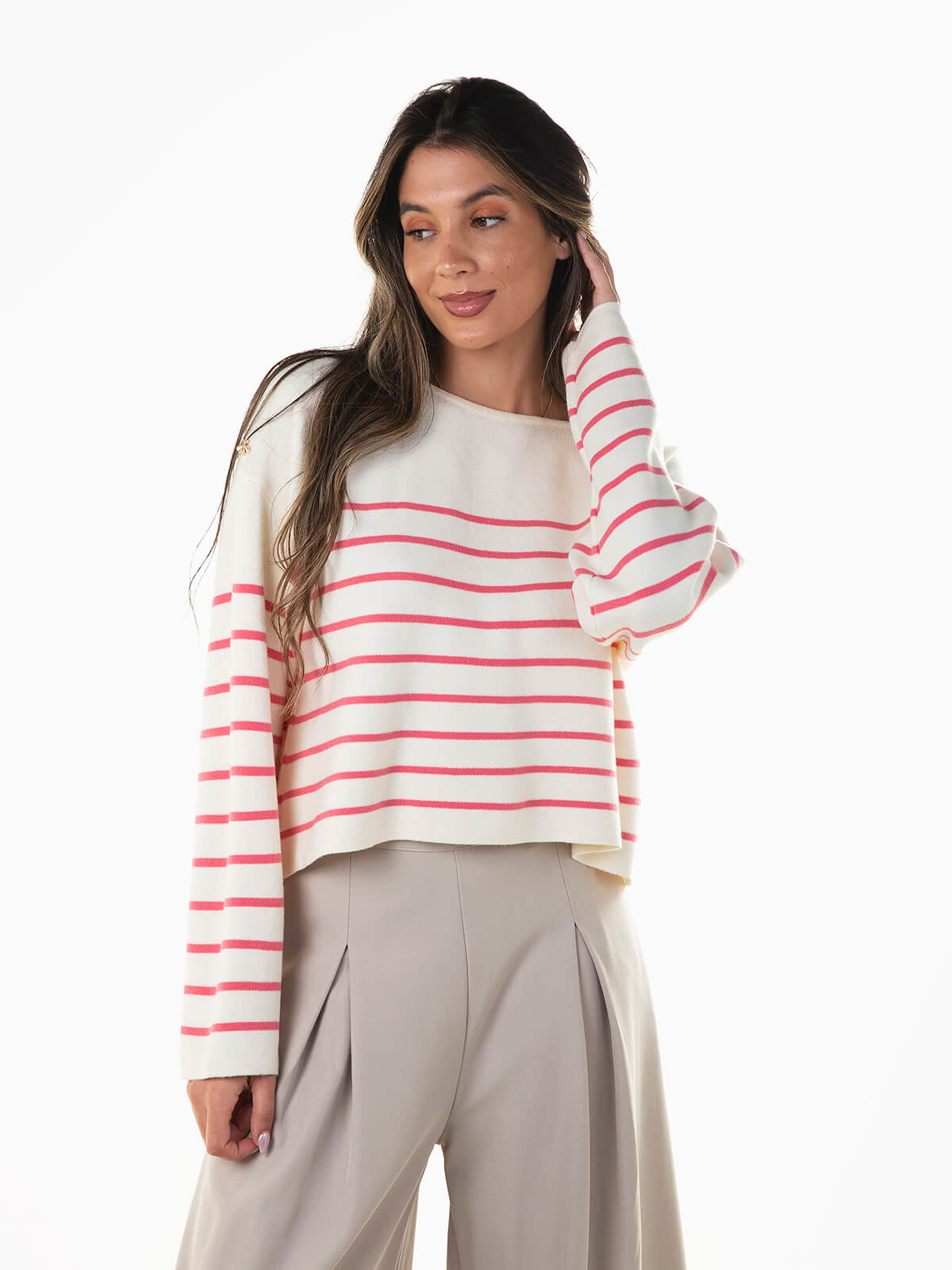 Início Mulher Malhas Camisolas Camisola malha riscas com aplicações