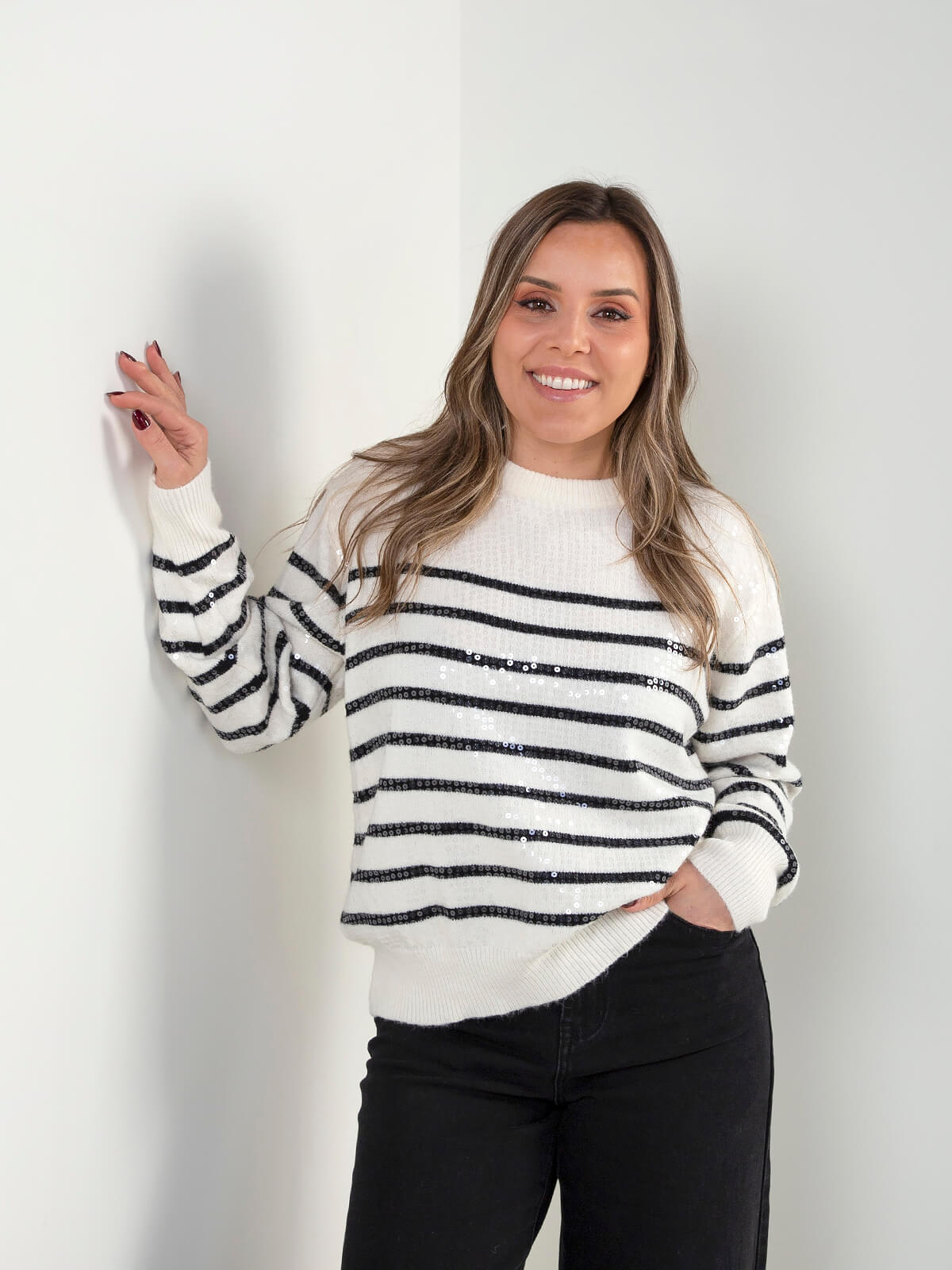Início Mulher Malhas Camisolas Camisola malha riscas com lantejoulas