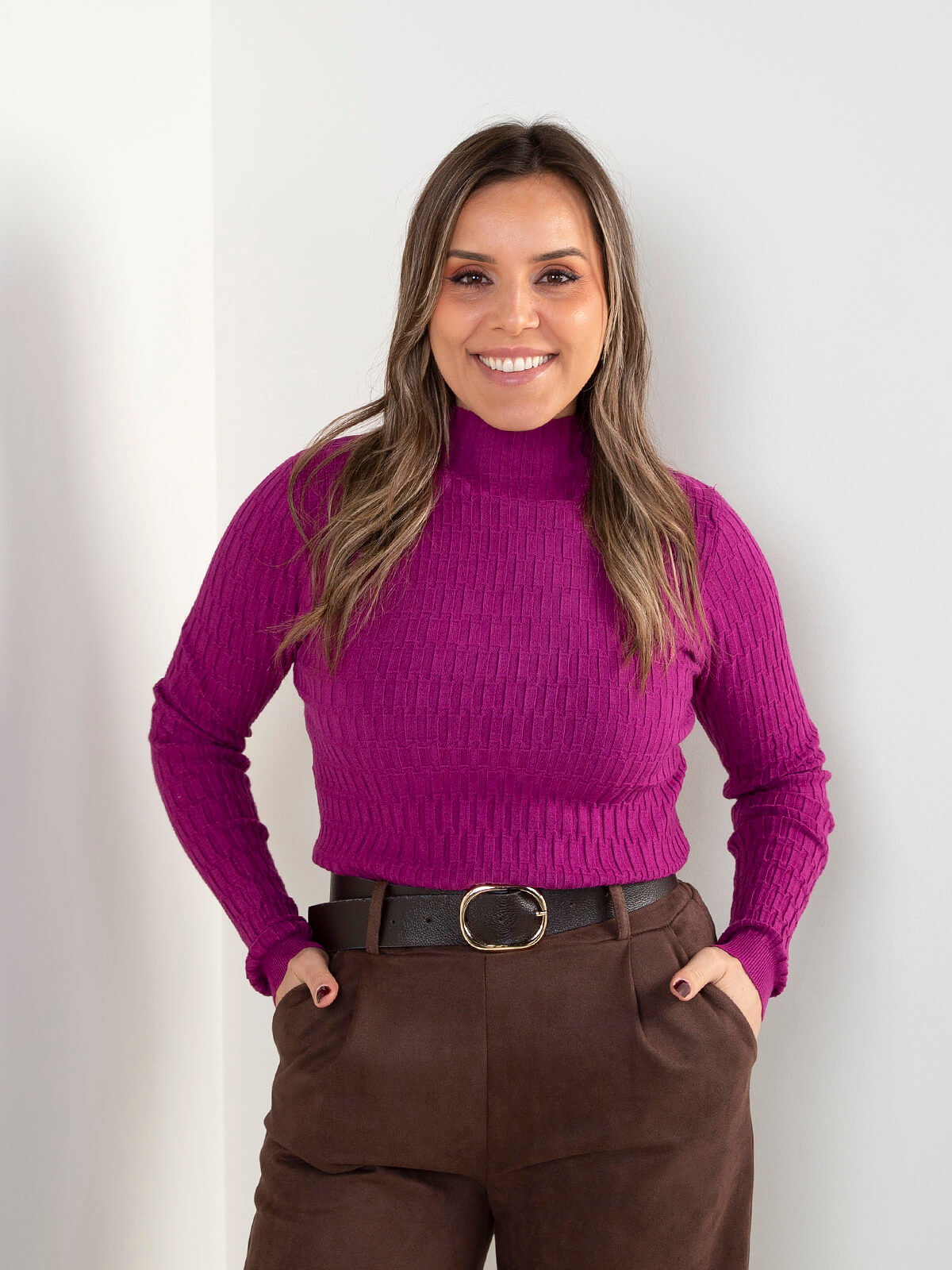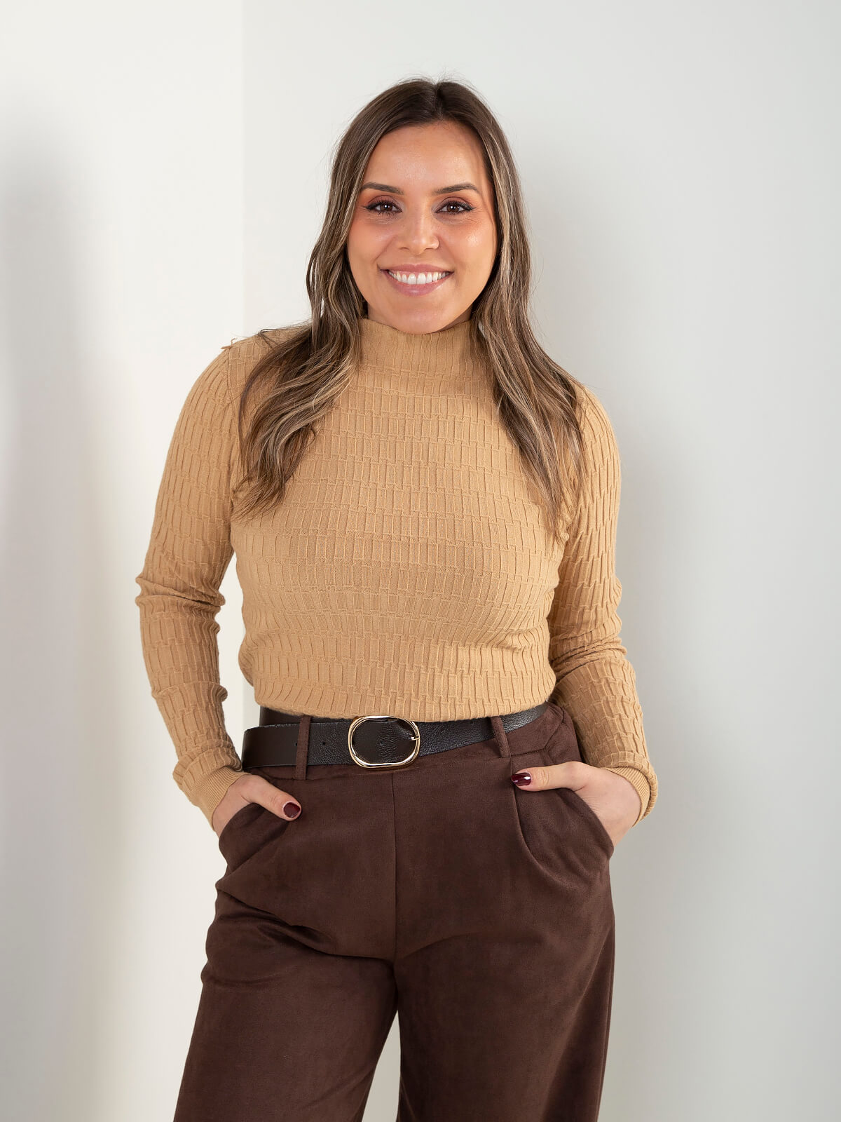 Início Mulher Malhas Camisolas Camisola malha texturizada com gola subida
