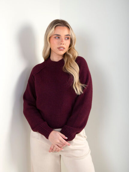 Camisola de malha trançada para senhora, com gola perkins e manga comprida. Malha macia com textura em relevo, ideal para looks clássicos e intemporais. Acabamentos canelados na gola, punhos e base.