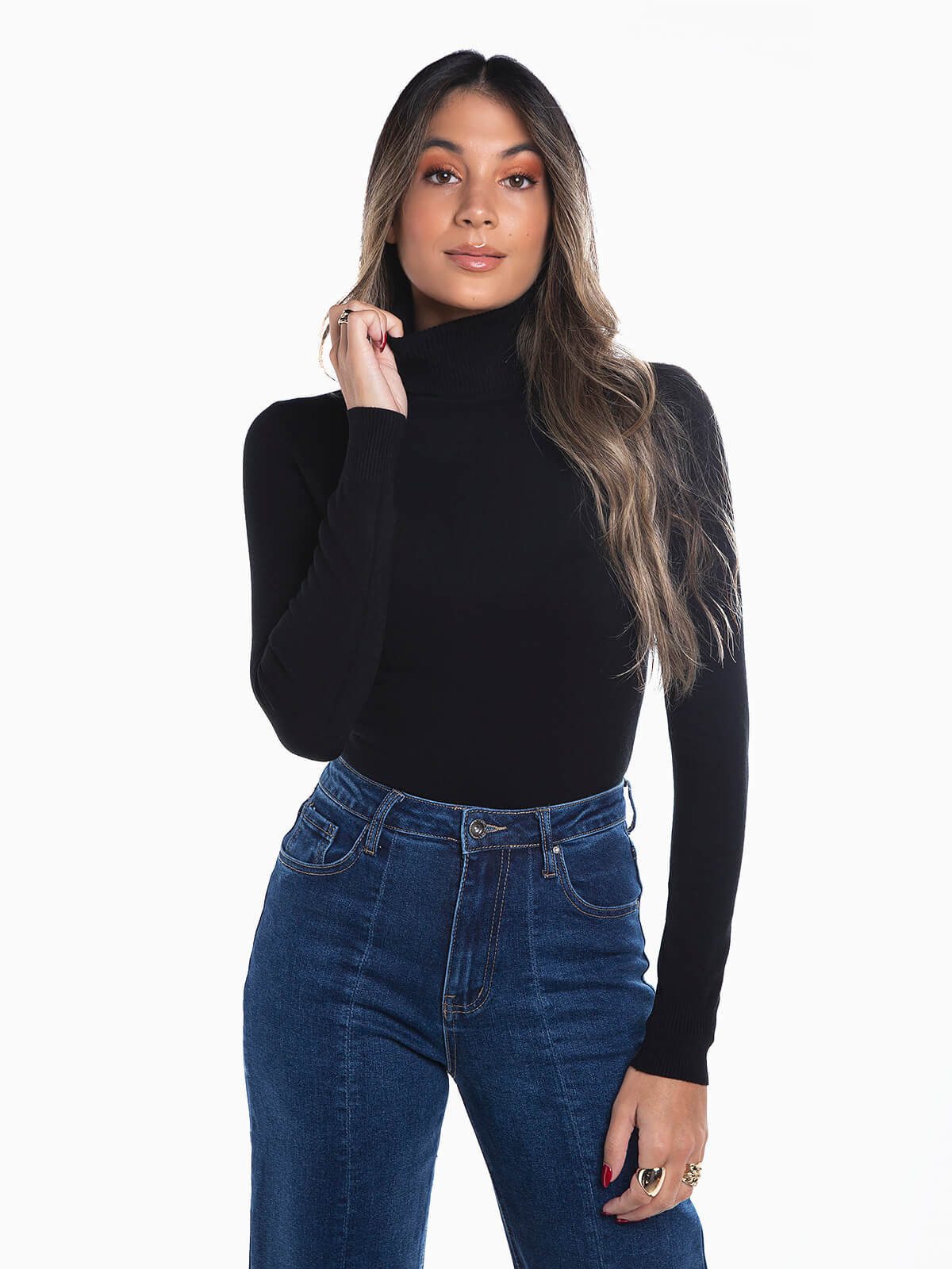 Camisola malha viscose gola alta