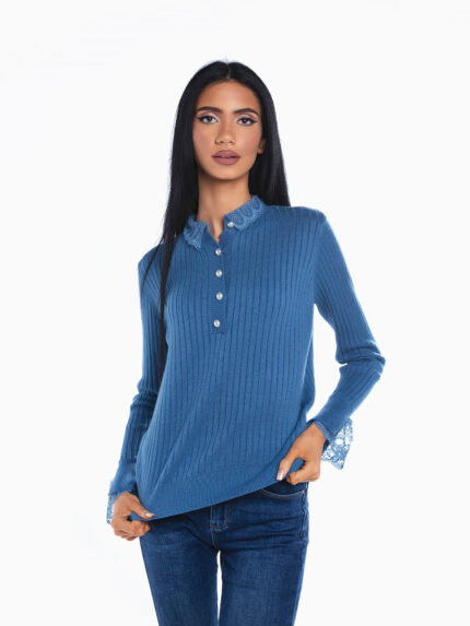 Camisola malha canelada com renda 9,99 €