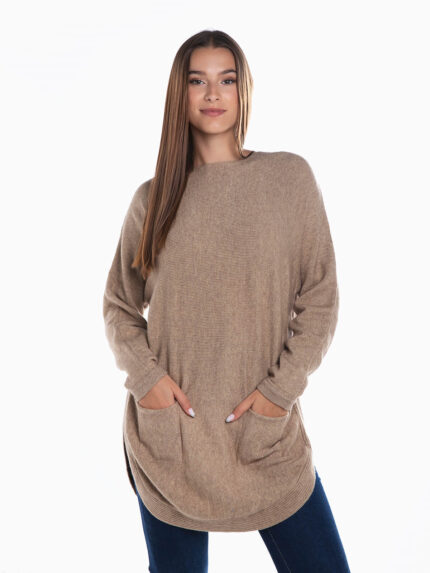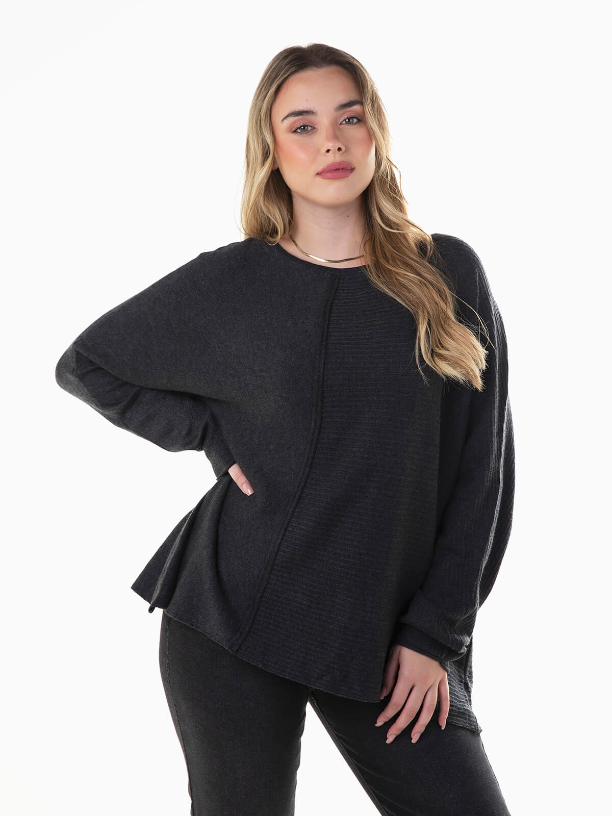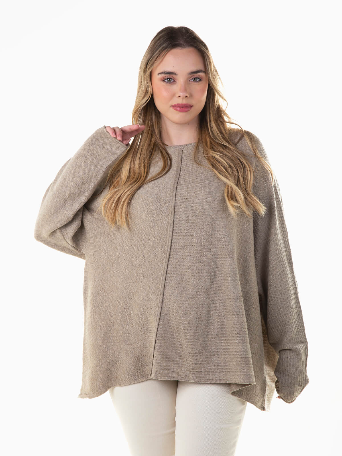 Camisola oversize em malha estruturada para senhora. Camisola de manga comprida com decote barco.