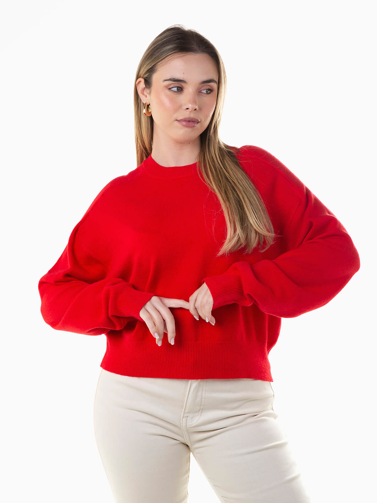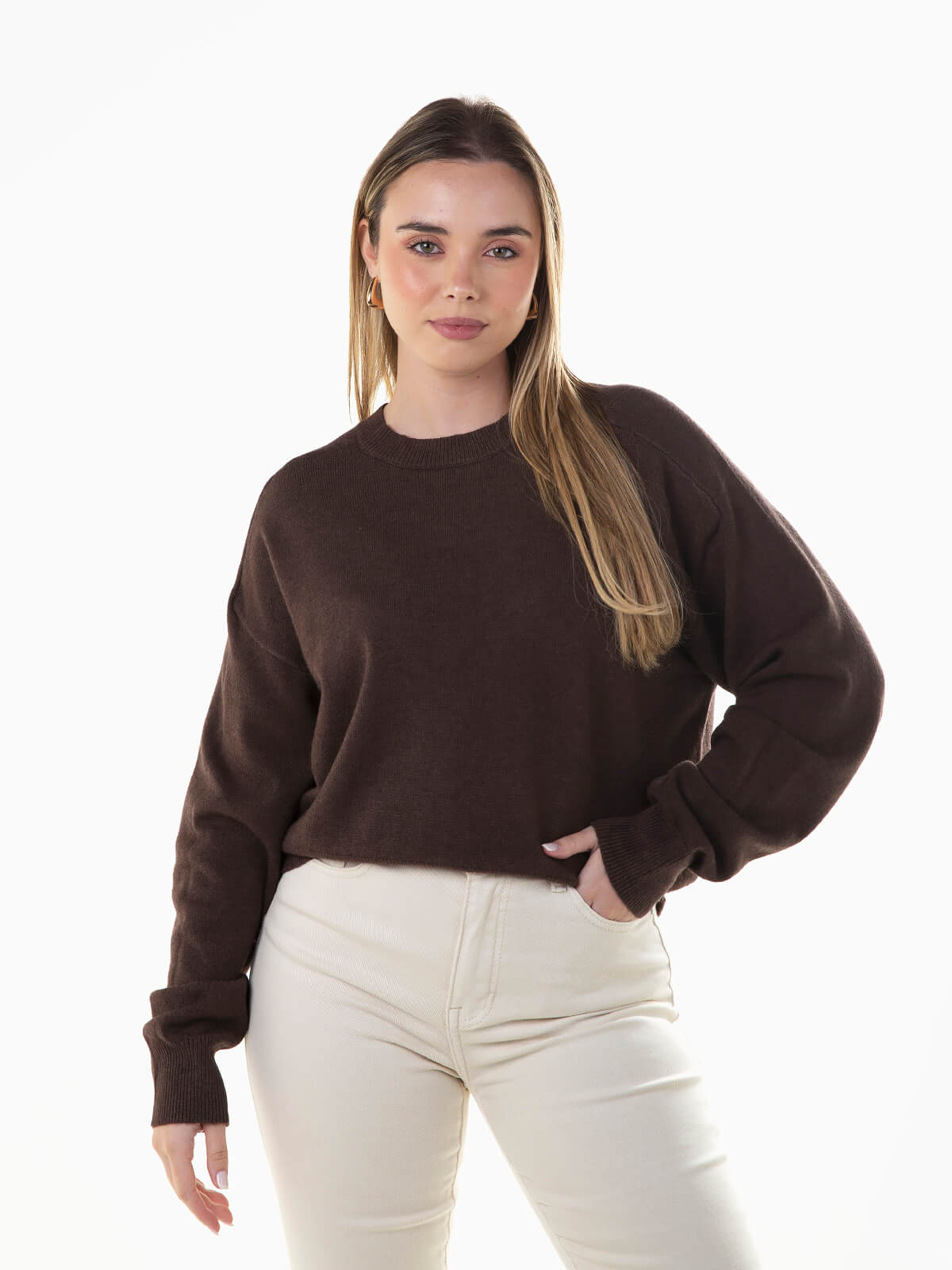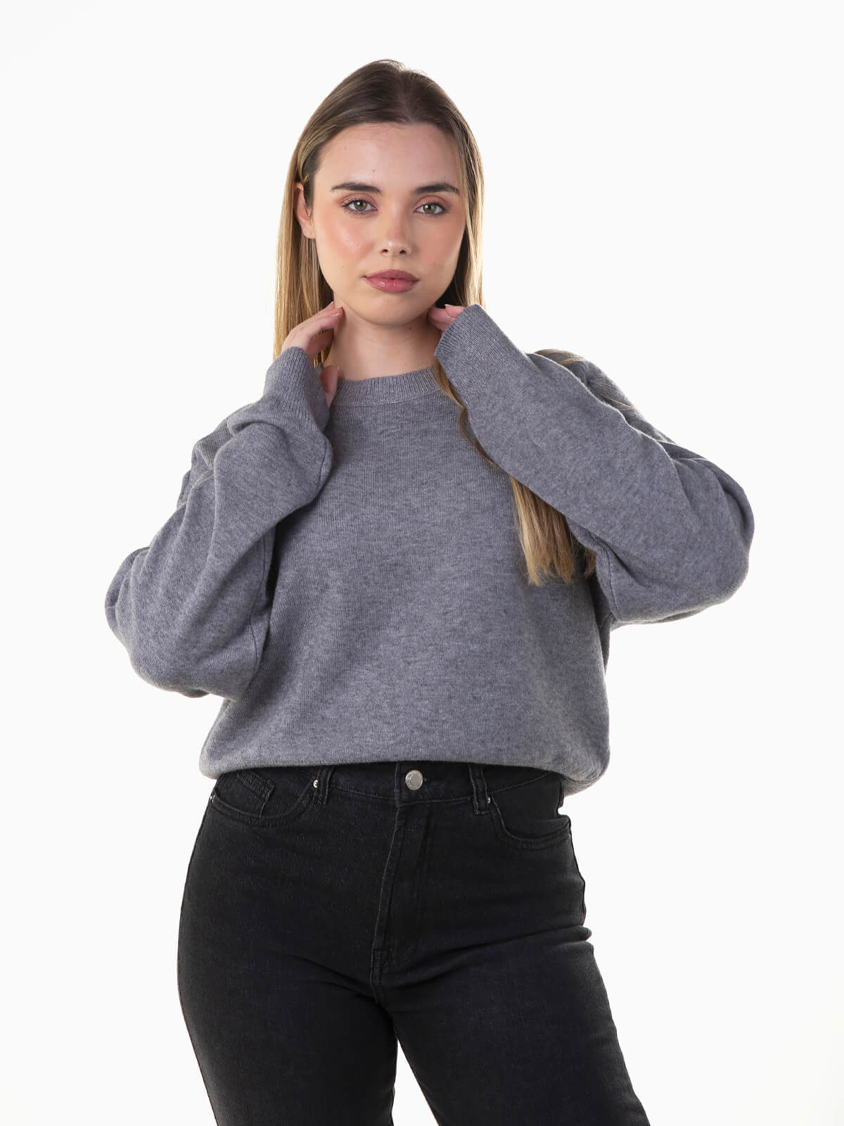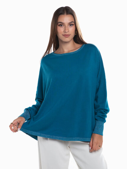 Camisola oversize em malha com mistura de viscose para maior conforto. Camisola de manga comprida com acabamentos canelados. Decote redondo.