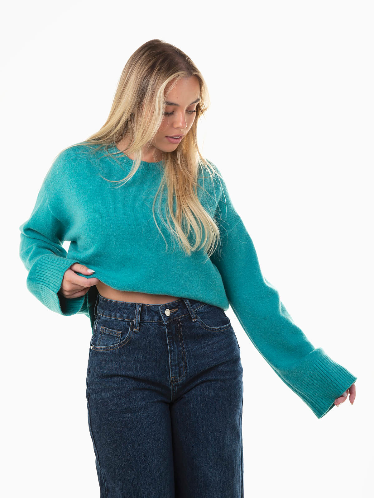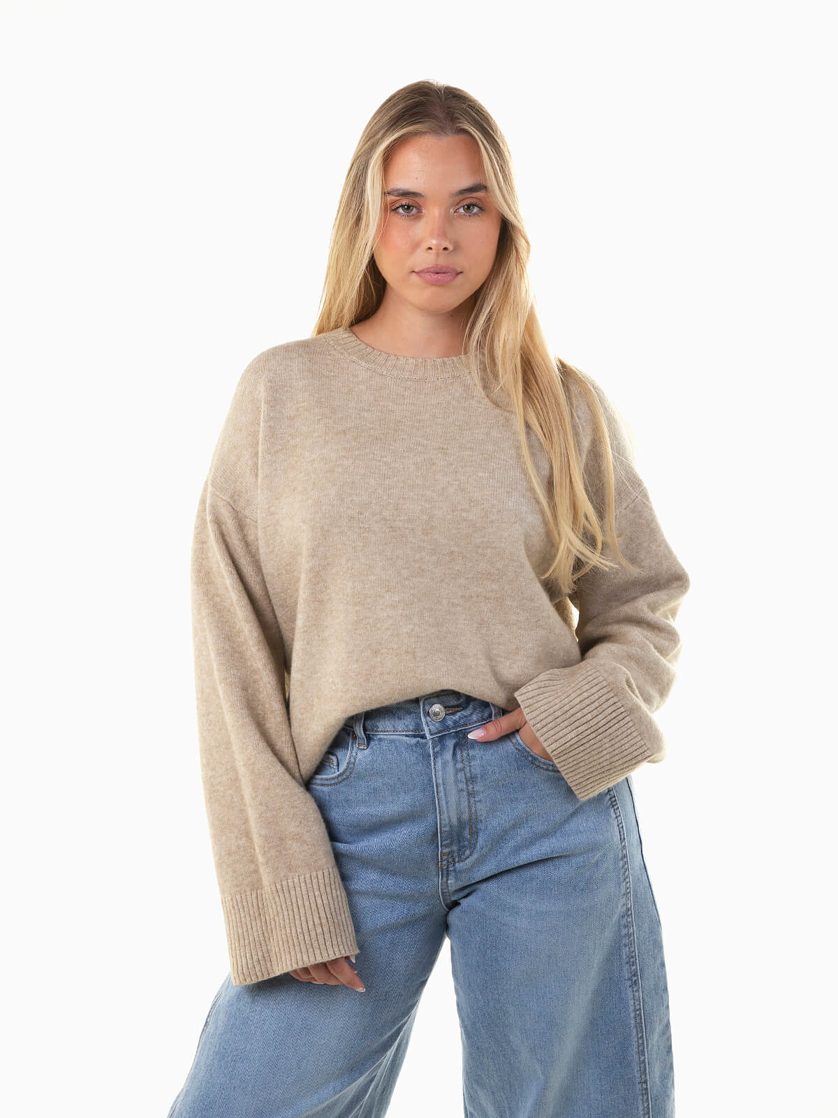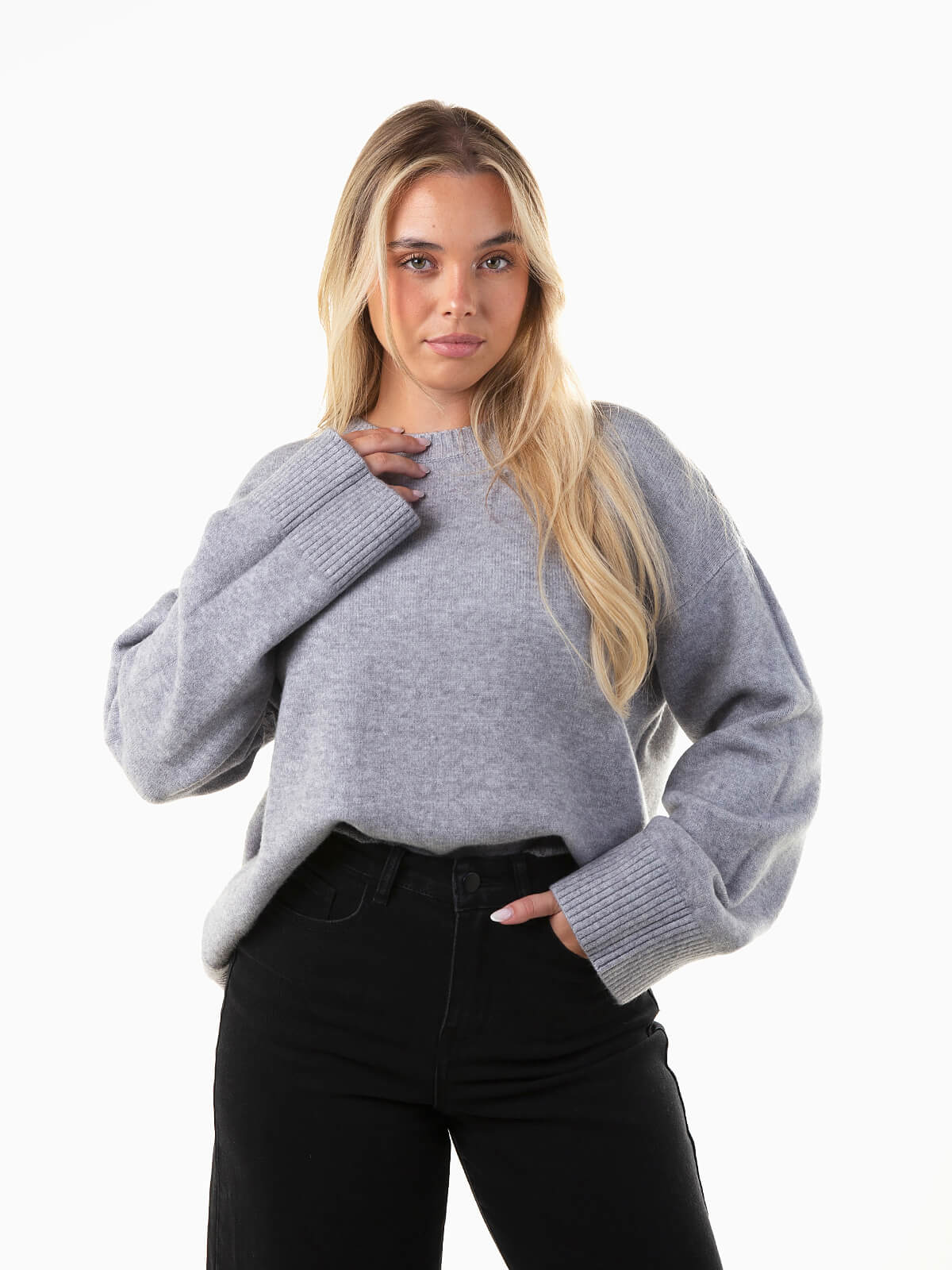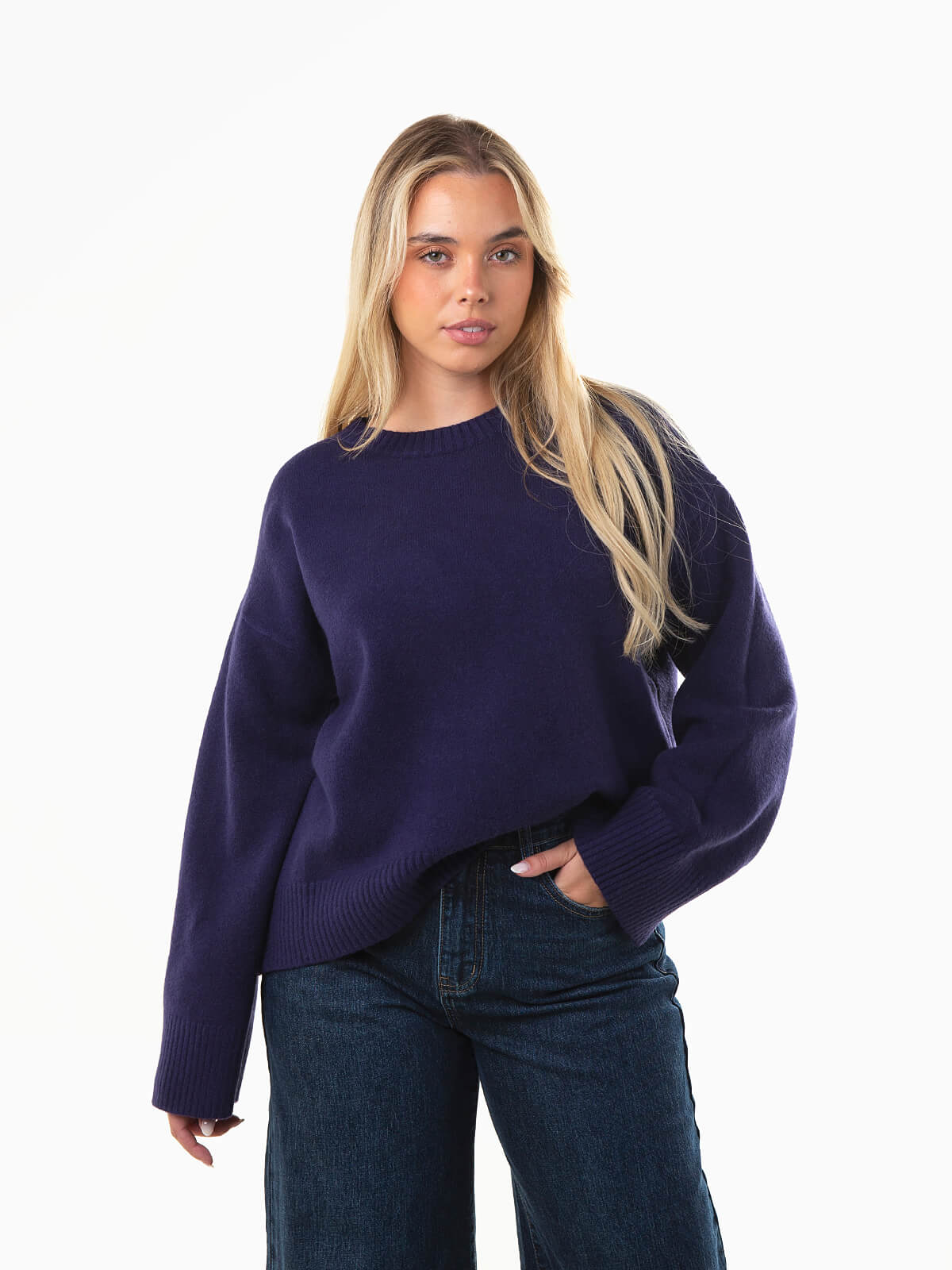 Camisola oversized em malha, com decote redondo e acabamentos canelados nas extremidades. Confortável e versátil, ideal para looks descontraídos. Combine com calças justas ou jeans para um outfit moderno e cheio de estilo.