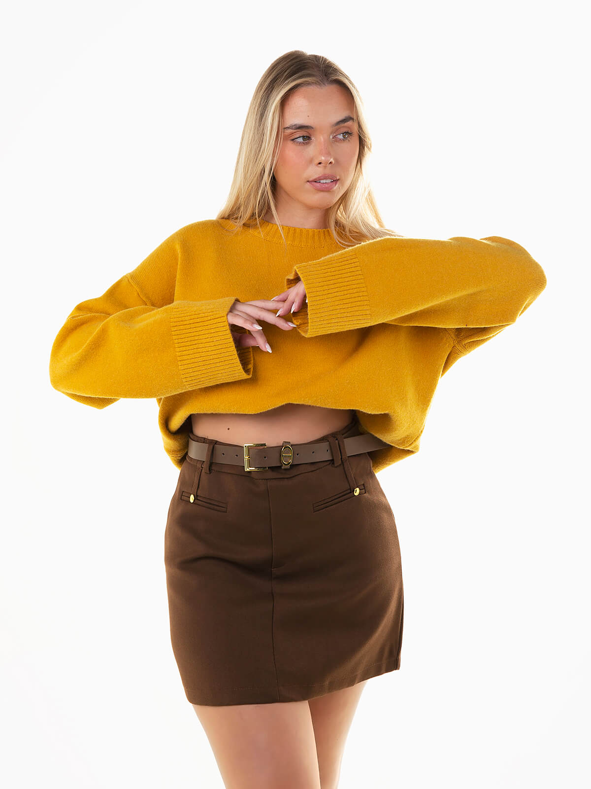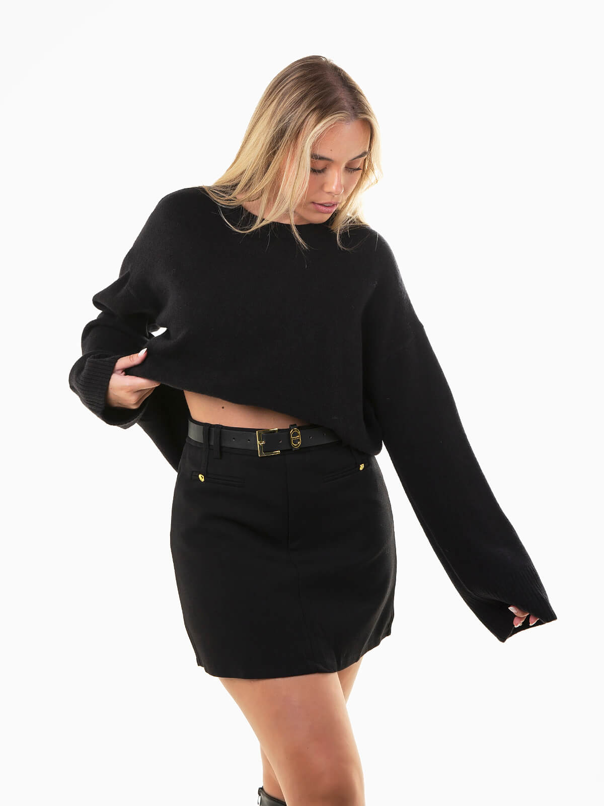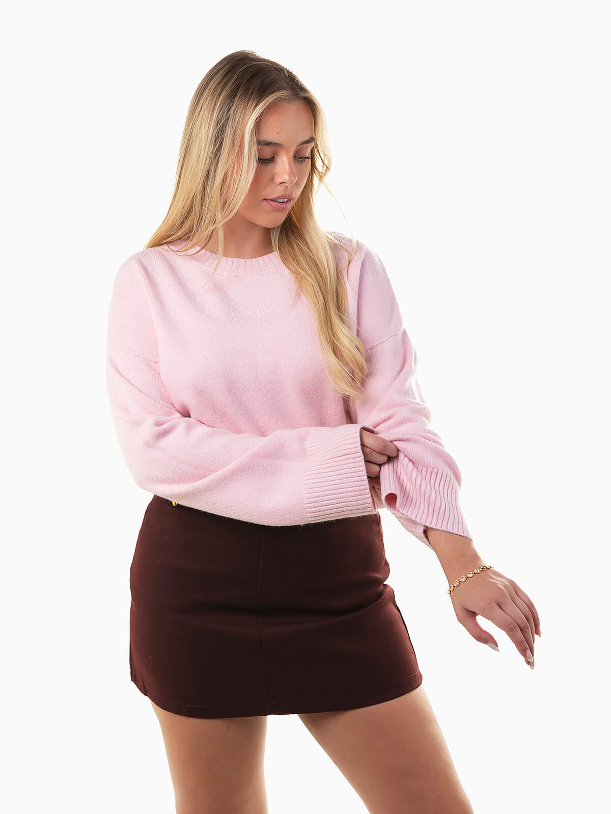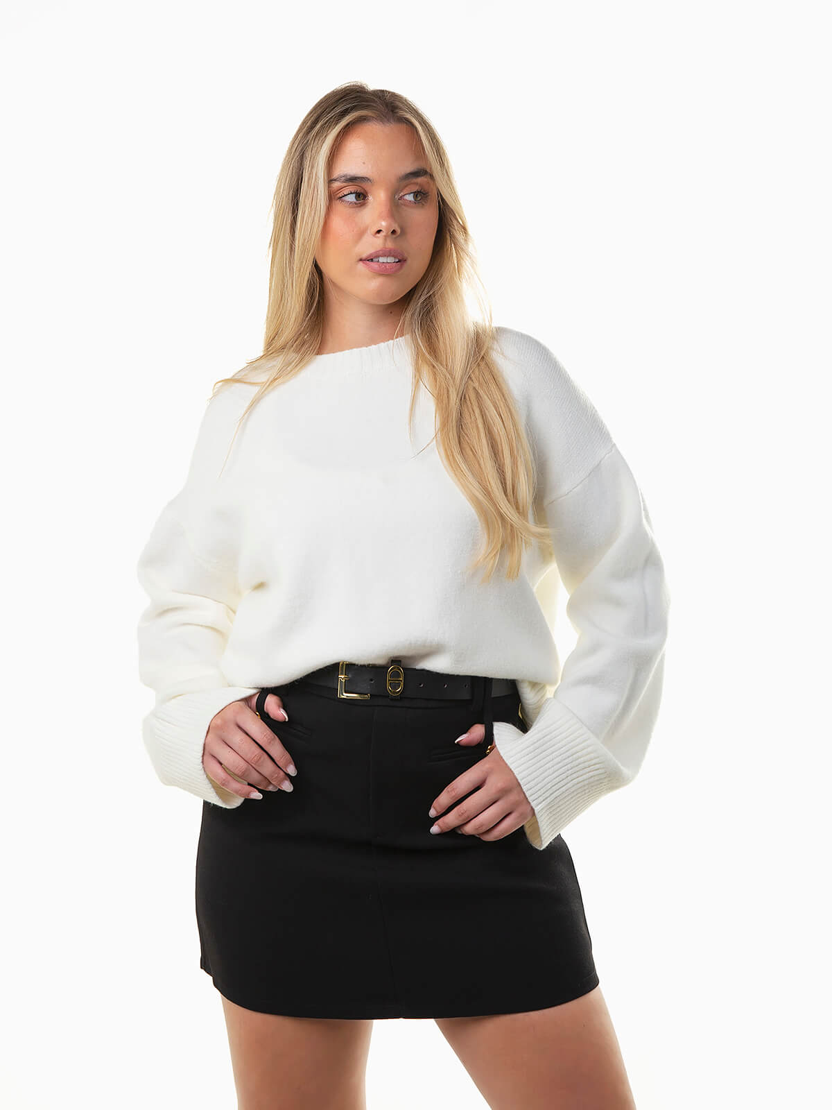 Camisola oversized em malha, com decote redondo e acabamentos canelados nas extremidades. Confortável e versátil, ideal para looks descontraídos. Combine com calças justas ou jeans para um outfit moderno e cheio de estilo.