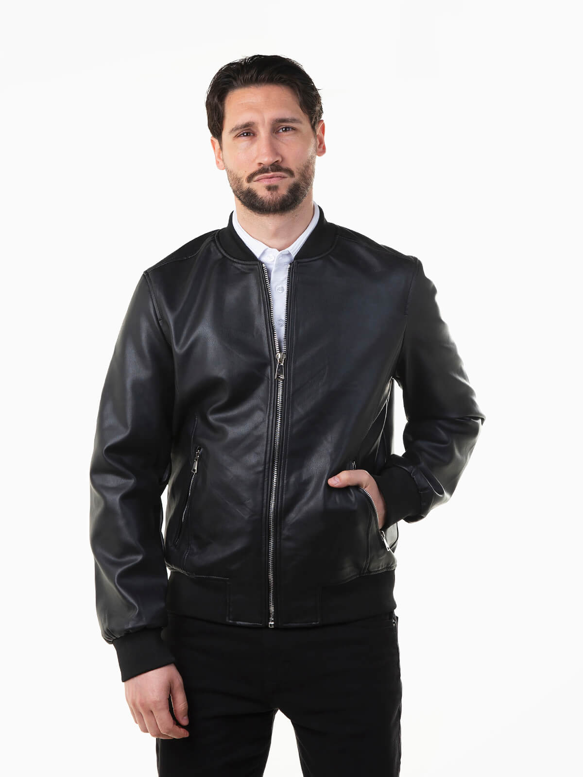 Início Homem Casacos e Blusões Casaco bomber preto efeito pele
