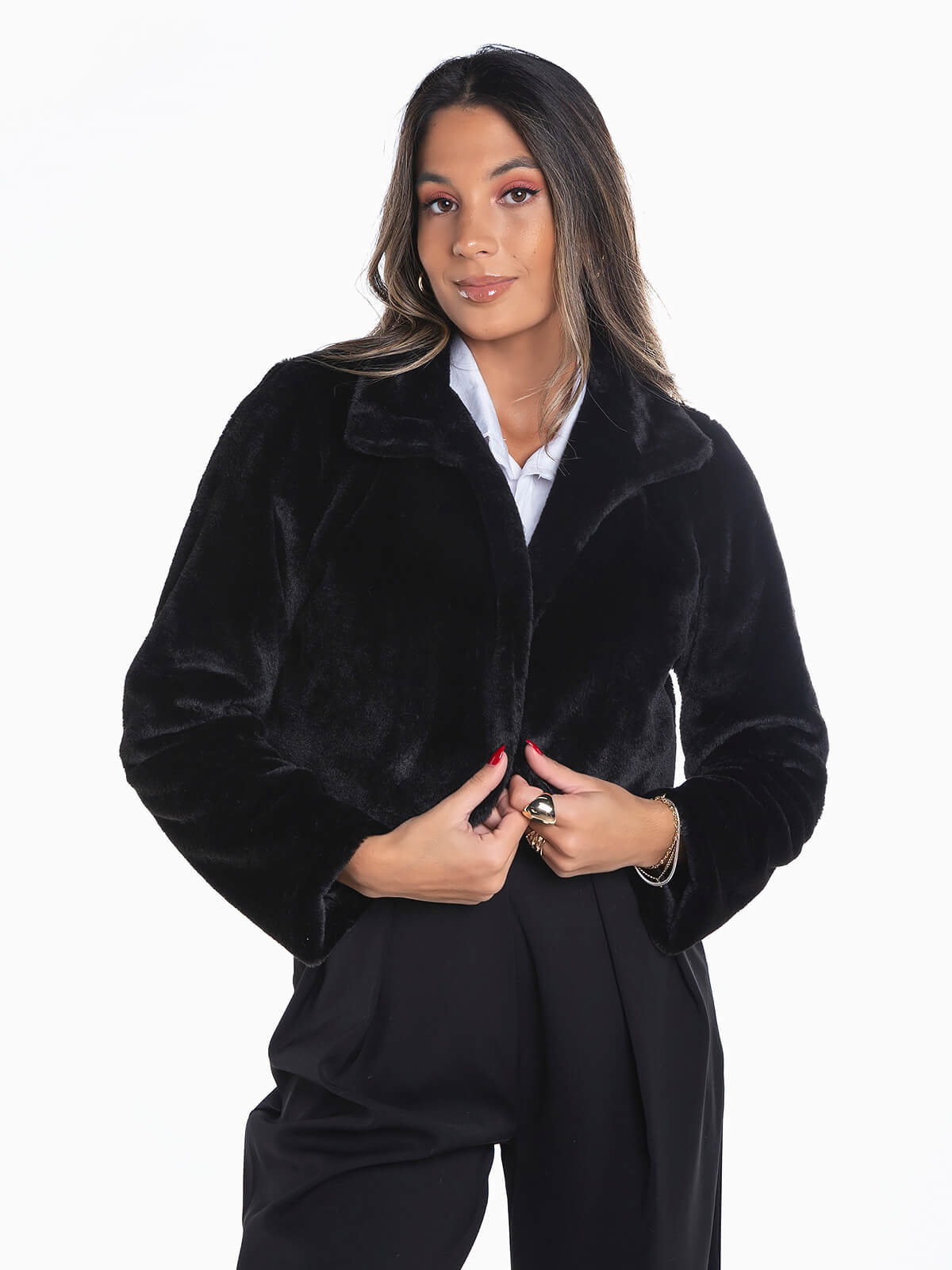 Casaco curto pelo sintético