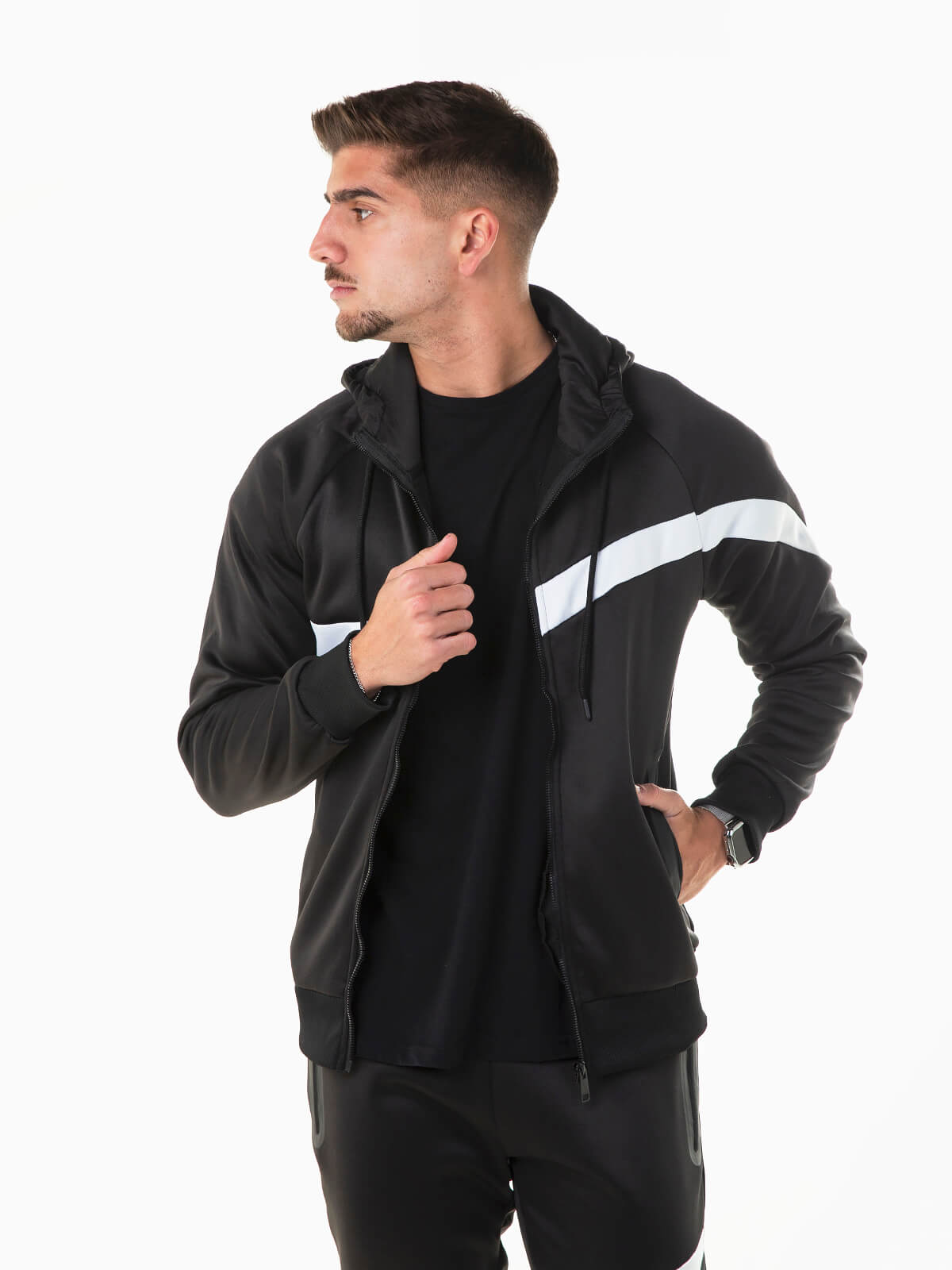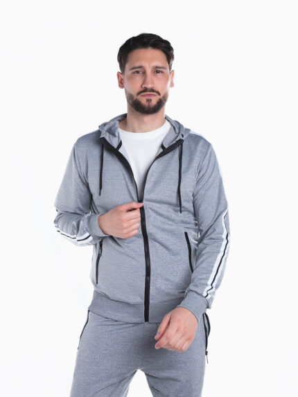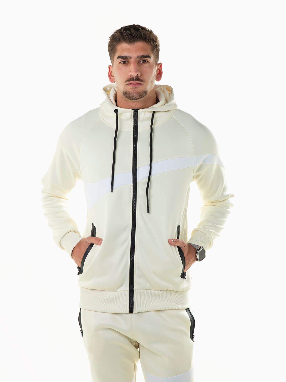 Casaco fato de treino com color block e gola subida para homem. Casaco com capuz e cordão para ajustar. Manga comprida e extremidades elásticas. Interior cardado. 2 bolsos. Aperto fecho zíper.