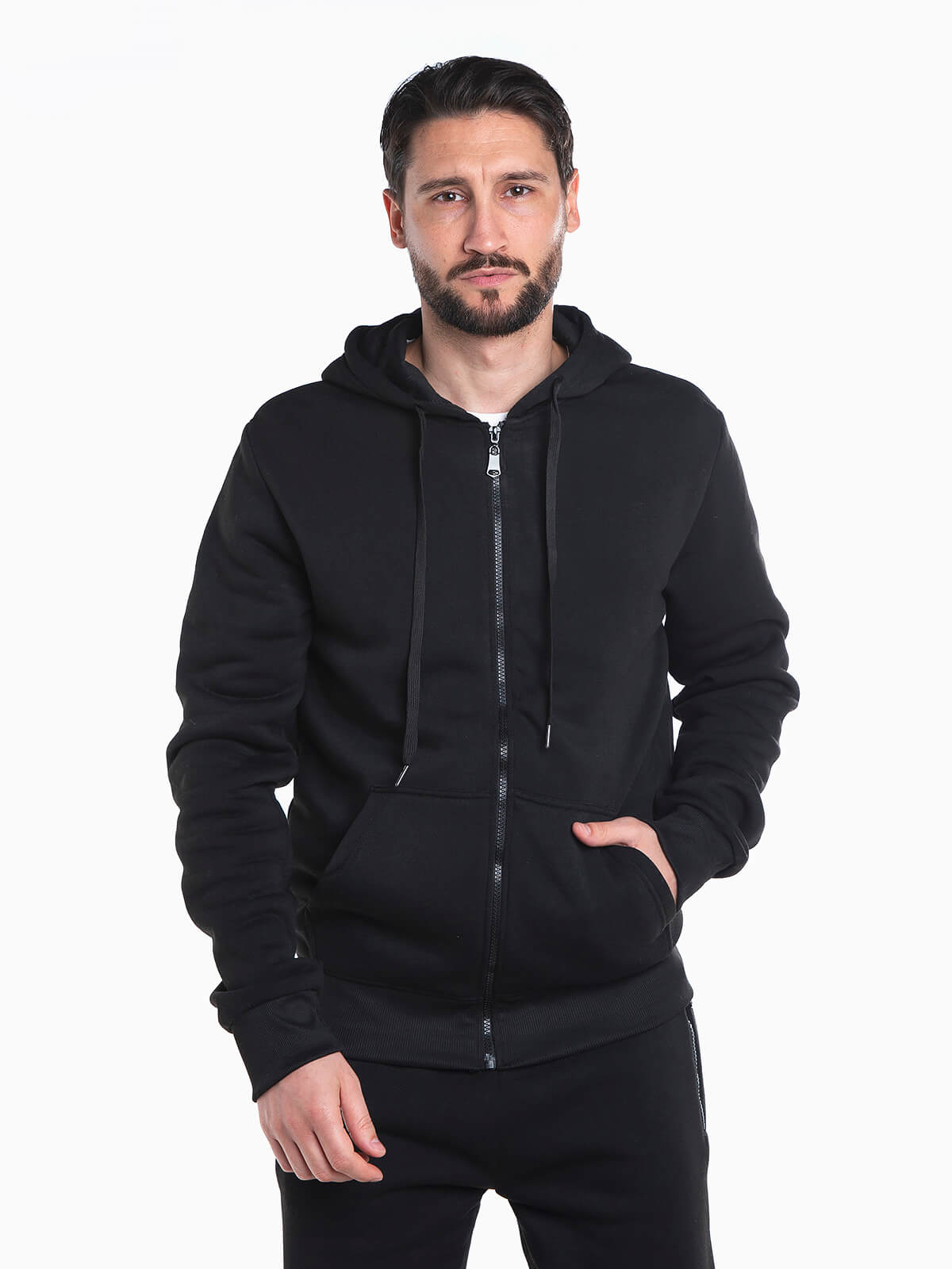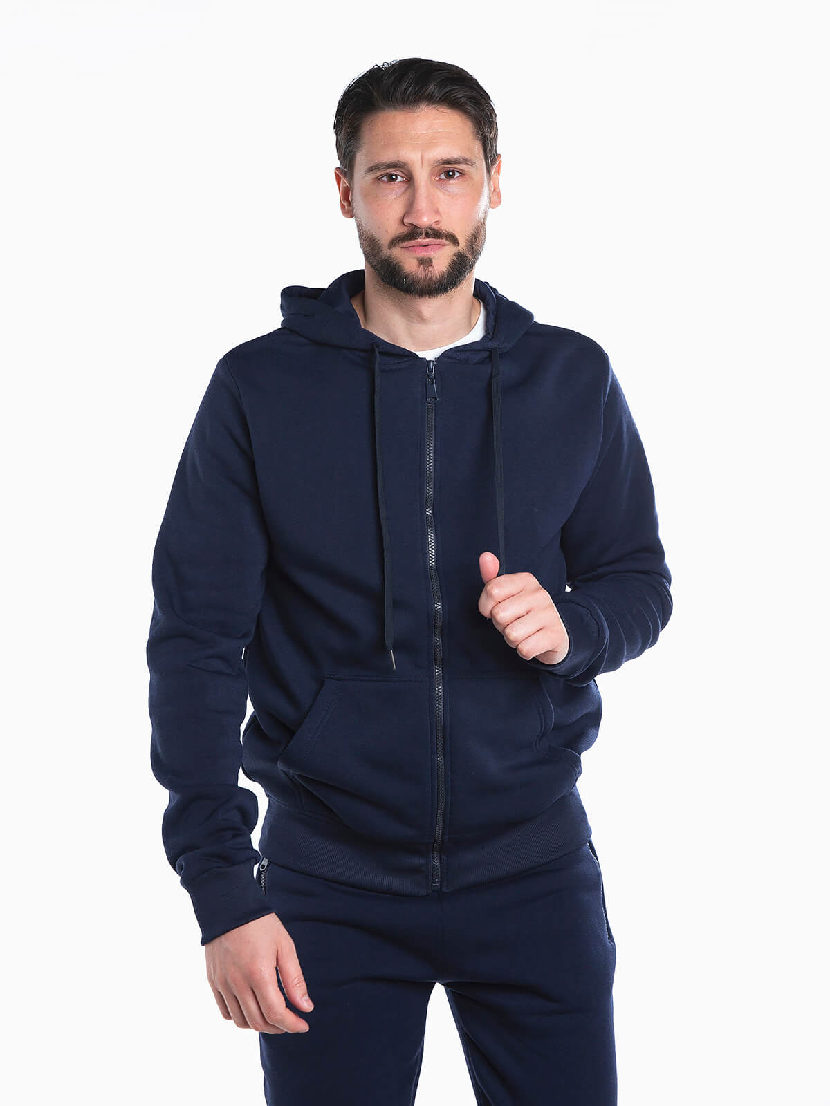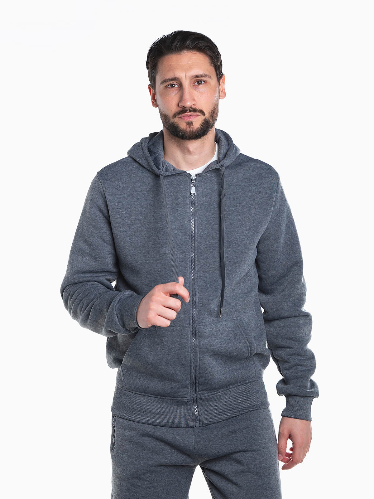 Casaco fato de treino em felpa para homem. Casaco com capuz e cordão para ajustar. Interior cardado. Bolso canguru.