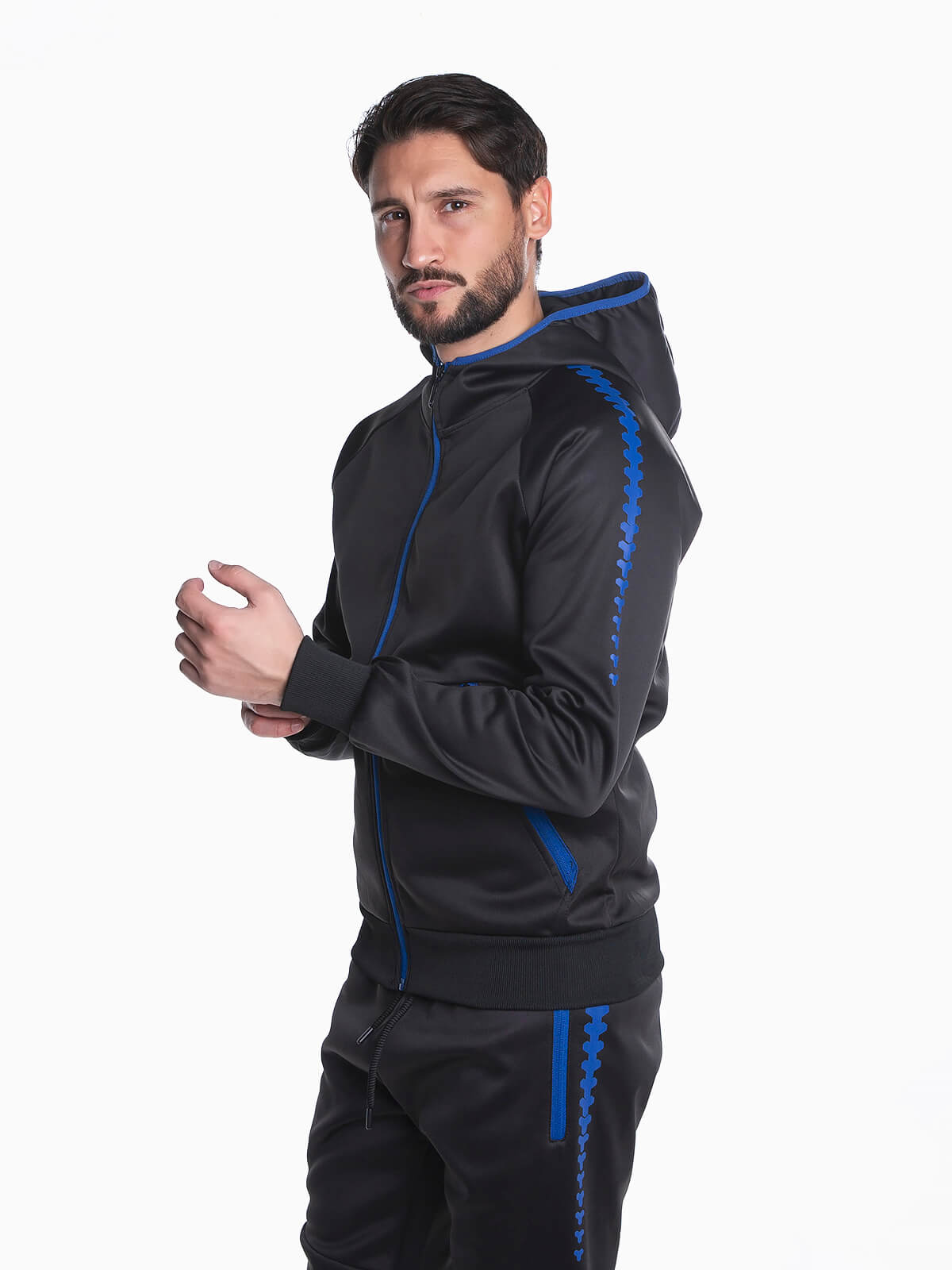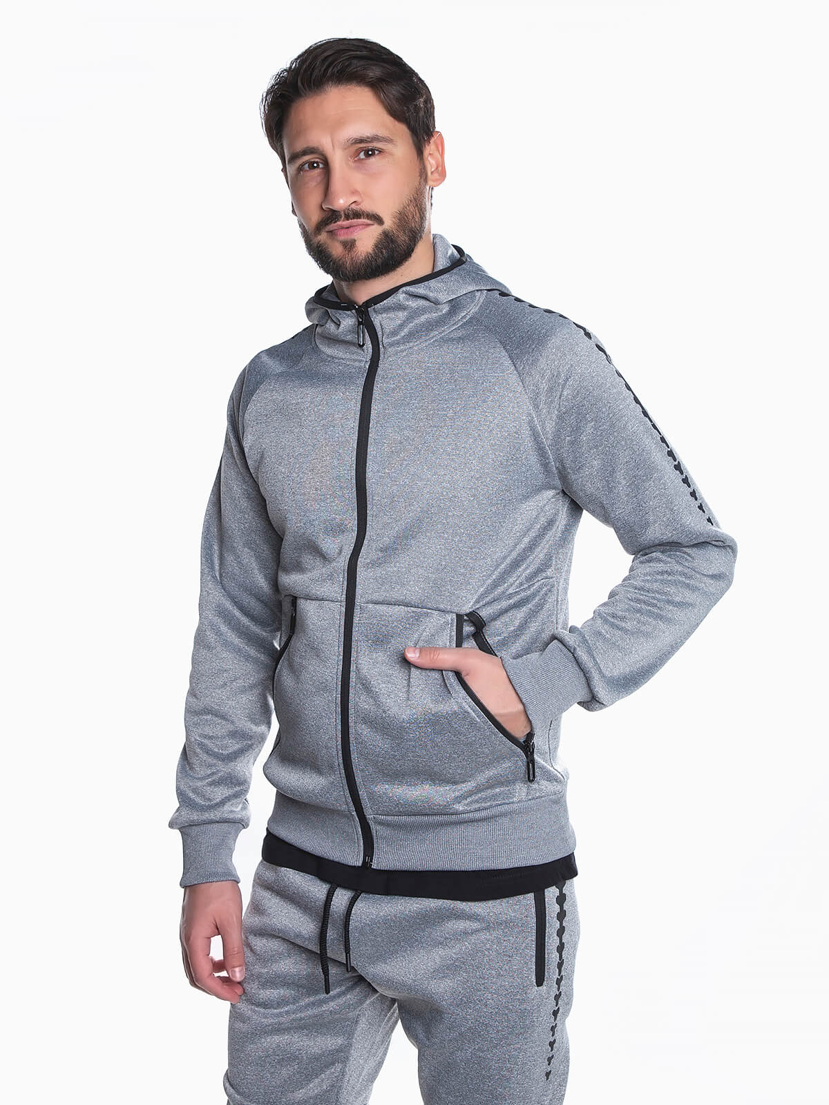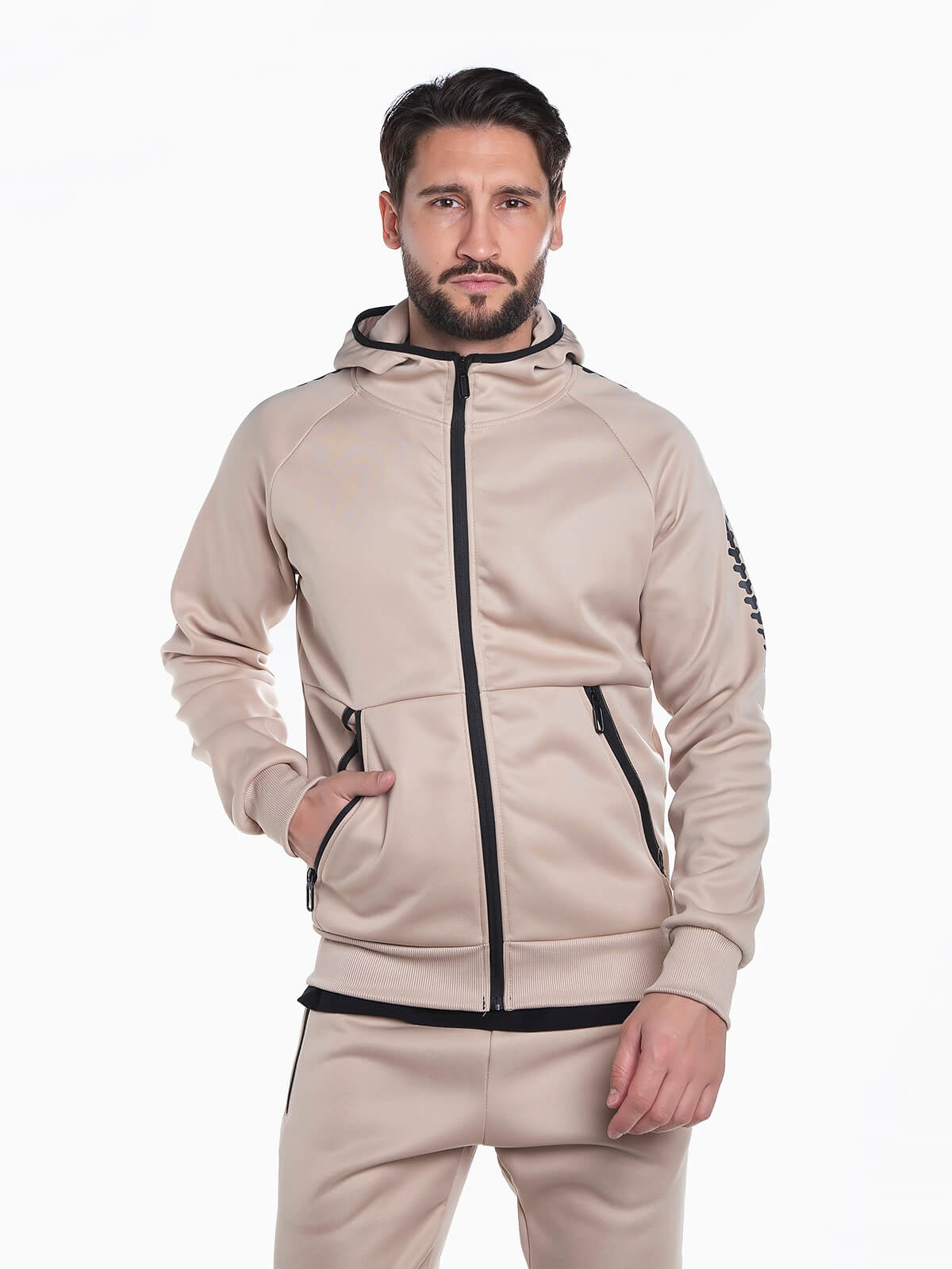 Casaco hoodie com estampado geométrico ao longo da manga e capuz. Casaco com interior cardado e gola subida. Manga comprida. 2 bolsos. Extremidades elásticas.
