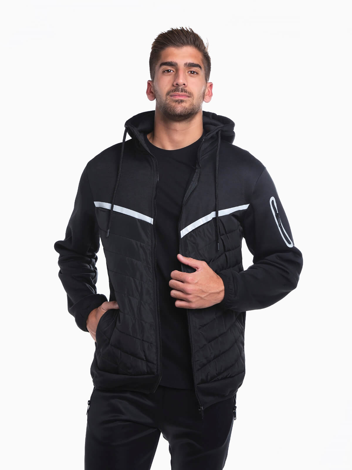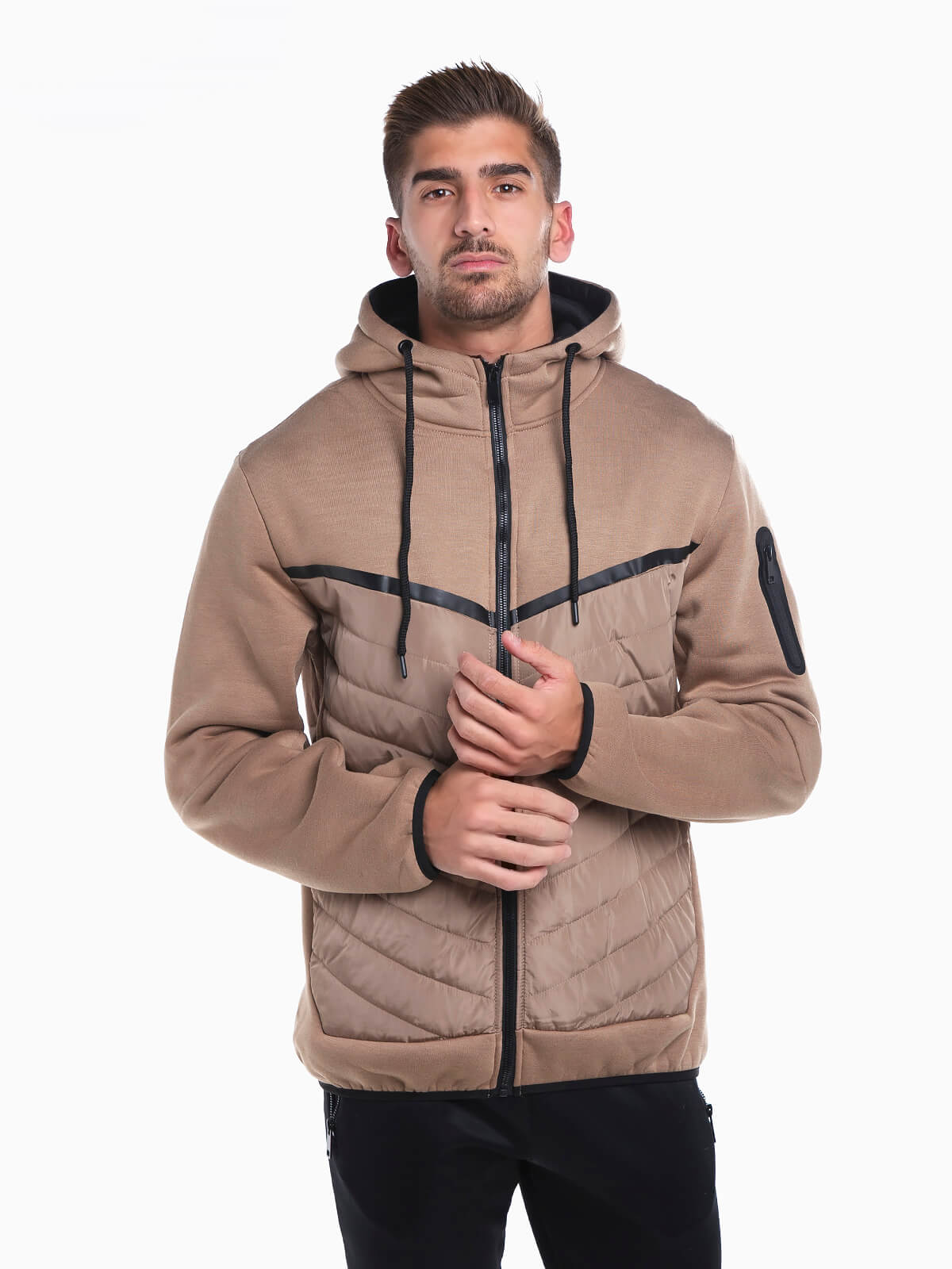 Casaco hoodie com encaixe acolchoado e interior cardado. Casaco com capuz e cordão para ajustar. Gola alta. 2 bolsos. Aperto fecho zíper.