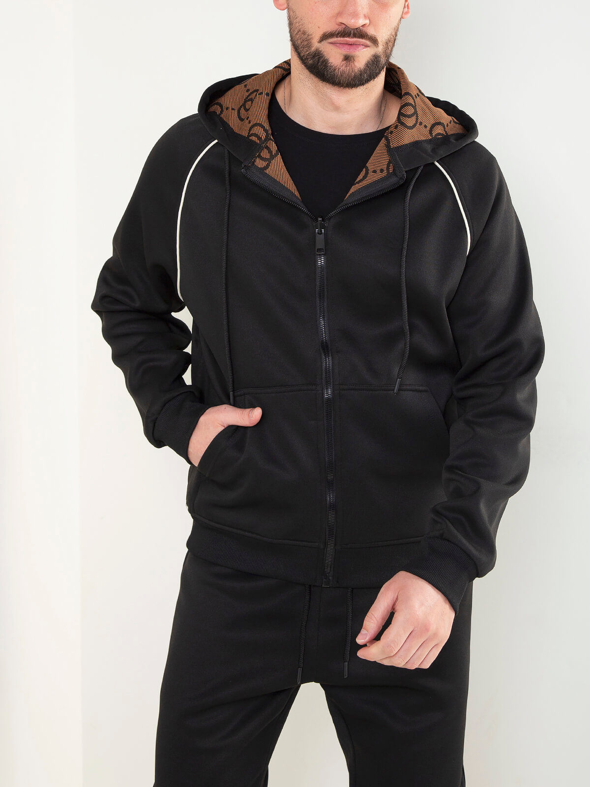 Início Homem Hoodies e Sweatshirts Casaco hoodie preto com interior estampado