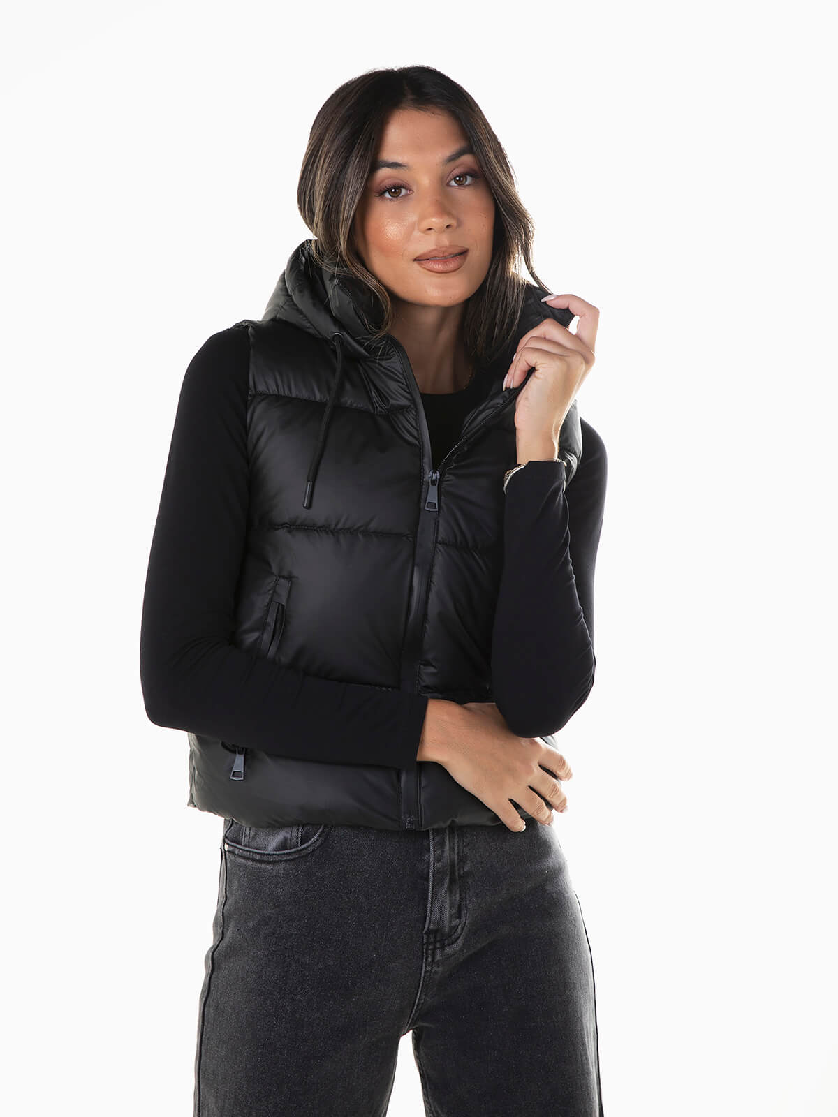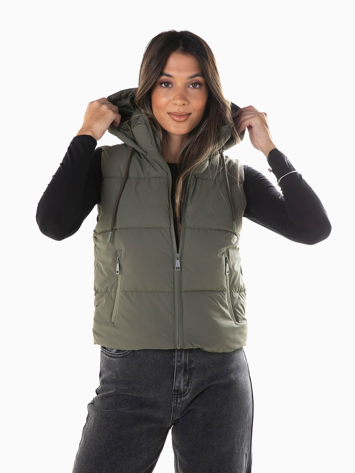 Início Mulher Casacos e Blusões Colete acolchoado com capuz
