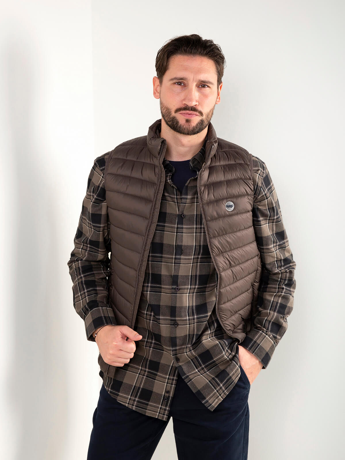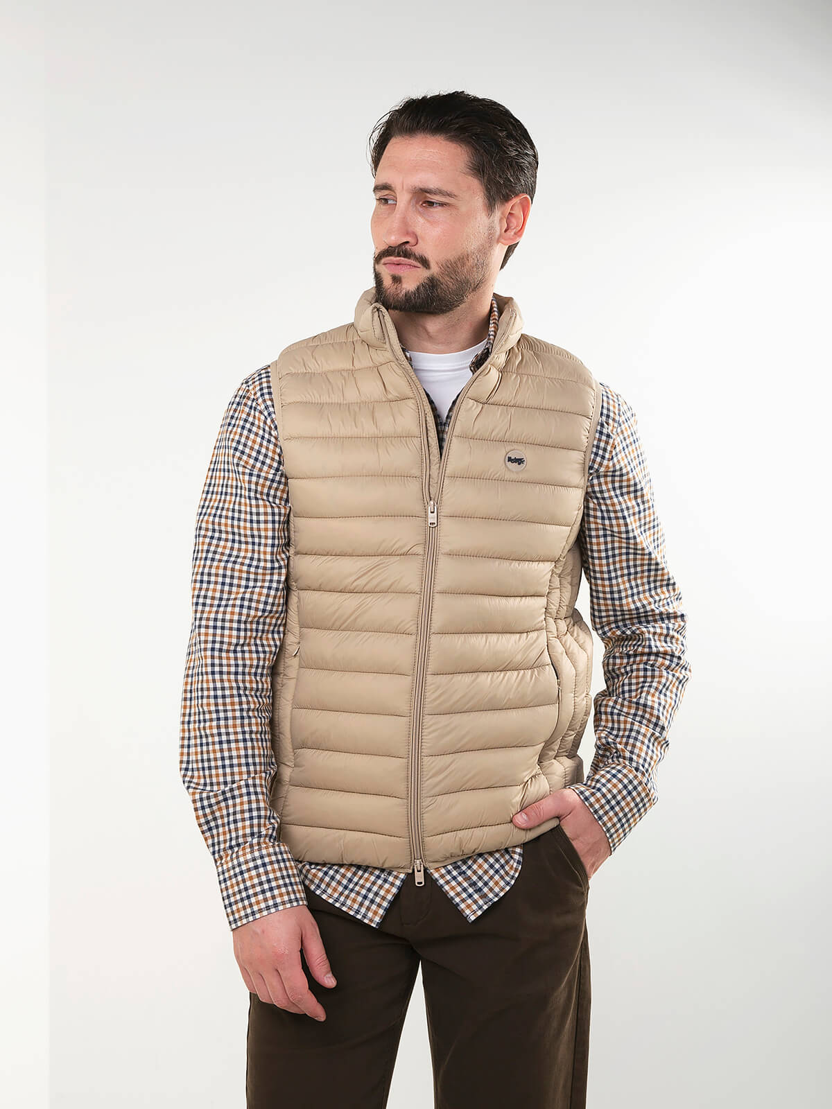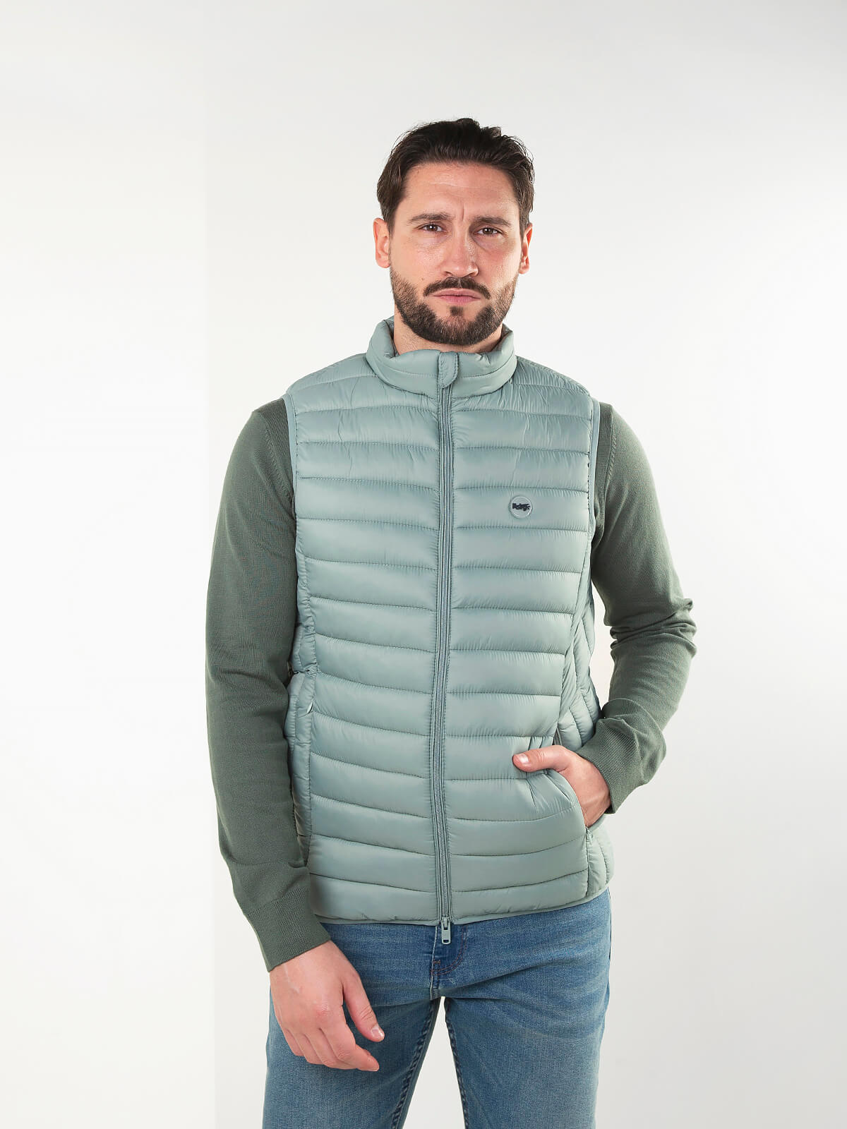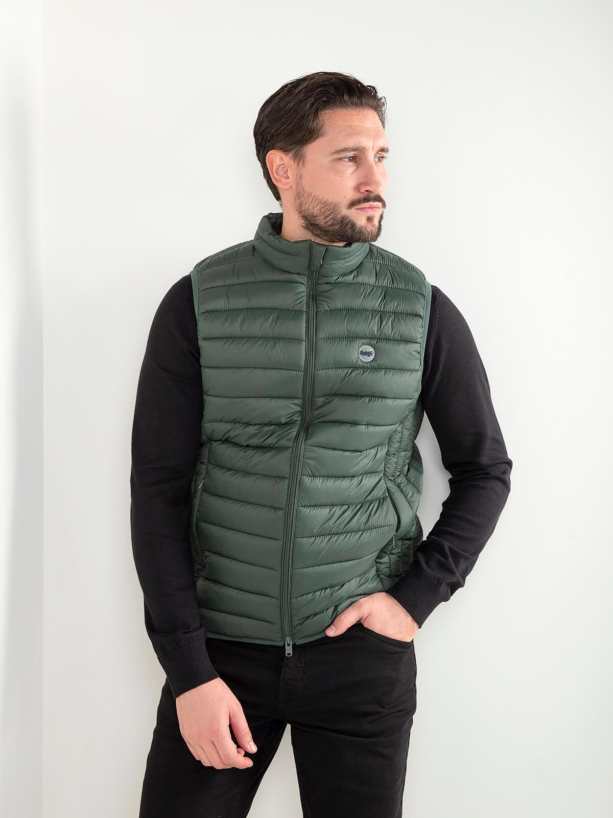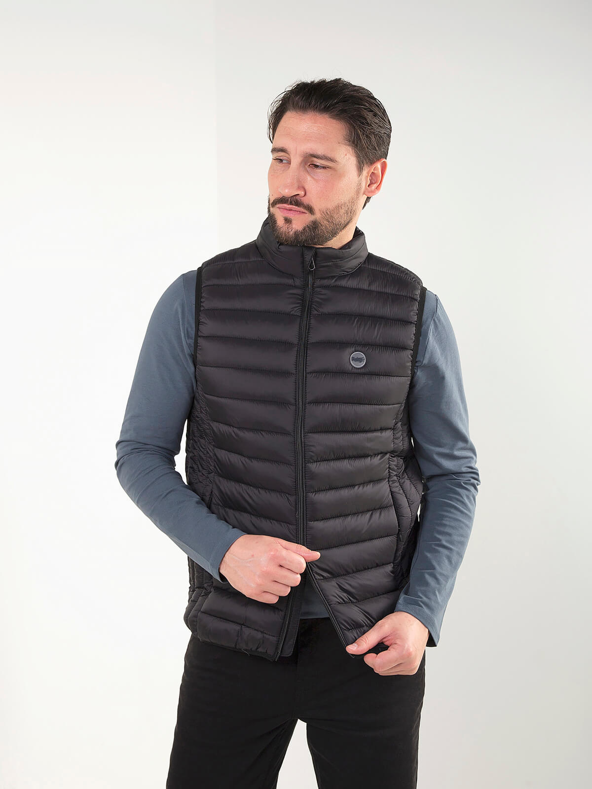 Colete acolchoado leve com gola subida e fecho em zíper. Modelo confortável, fácil de usar no dia a dia e perfeito para sobrepor em looks casuais. Inclui bolsos laterais discretos.