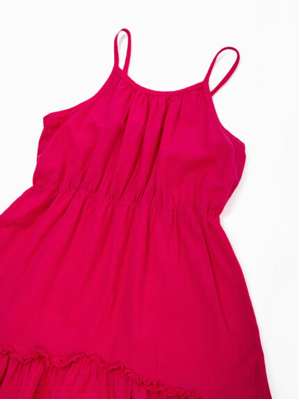 Conjunto para bebé menina composto por 2 peças. Camisola de manga comprida com gola baby-doll em bordado inglês. Aperto posterior de botões. Saia efeito ganga de cintura elástica.