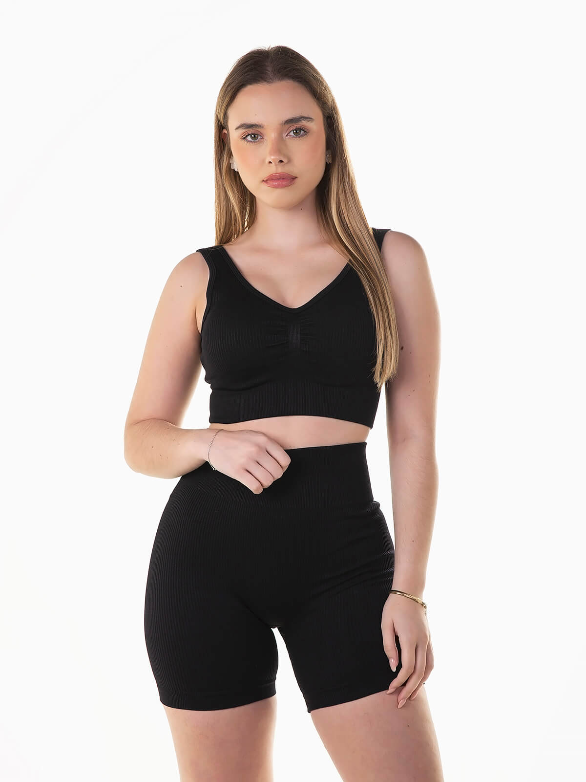 Início Mulher Conjuntos e Macacões Conjunto elástico top e calções