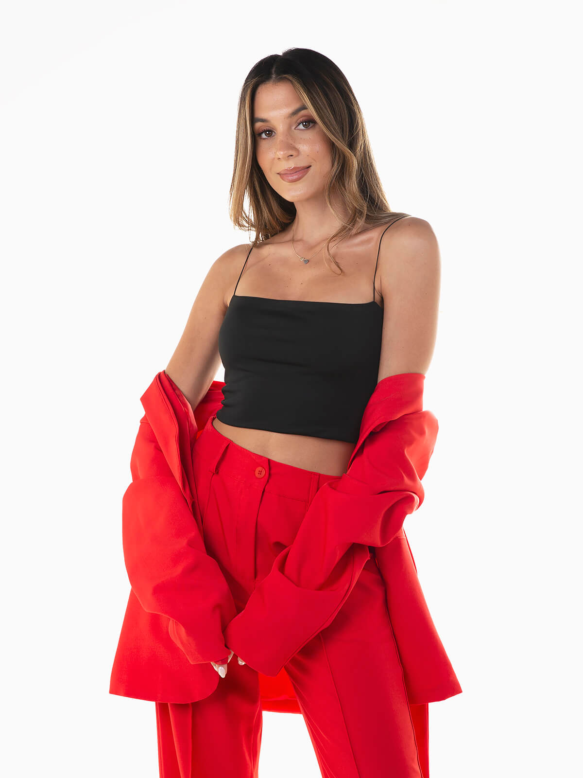 Crop top elástico com alças finas para mulher. Top com decote quadrado.