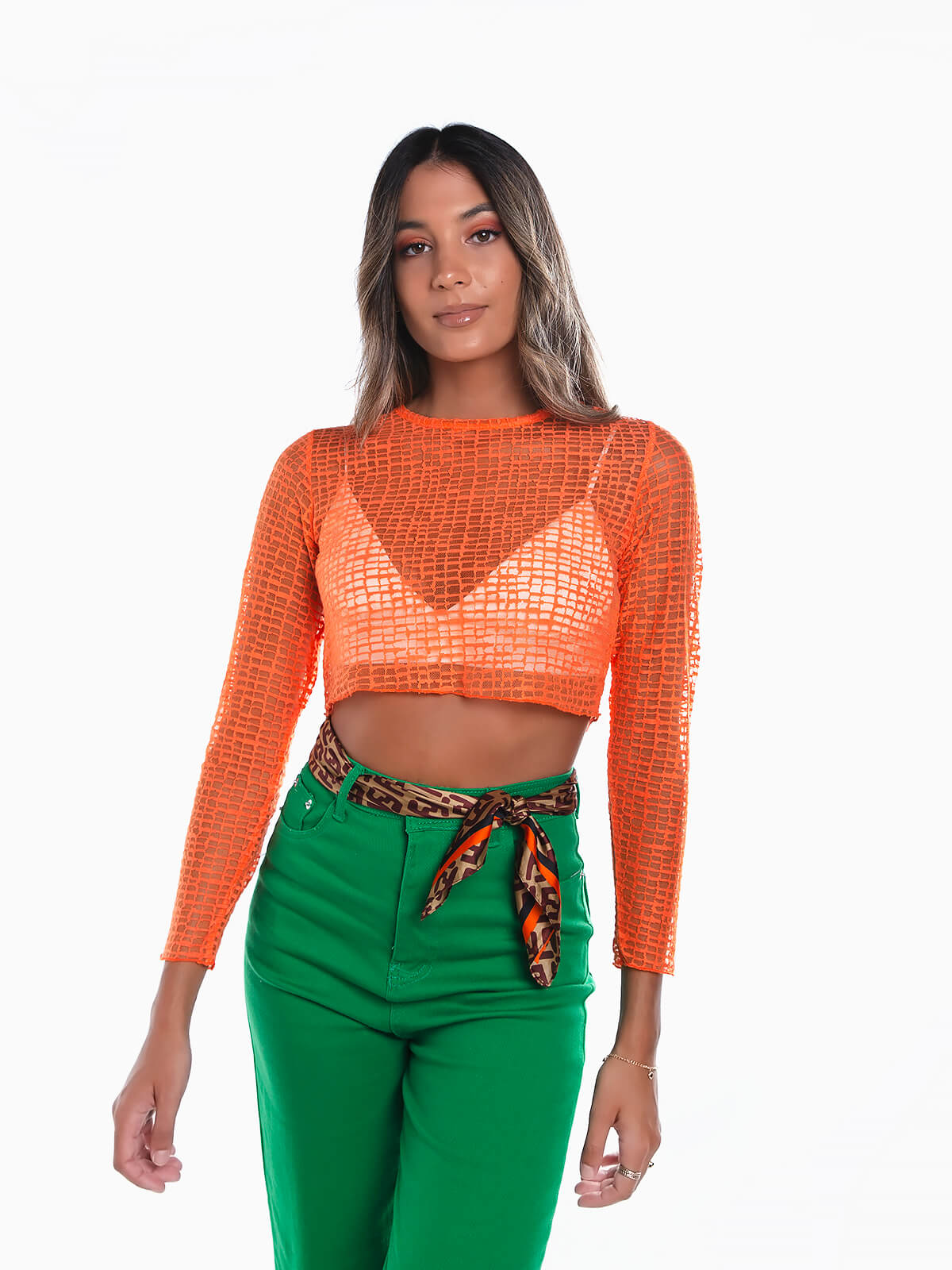 Início Mulher Tops e Bodies Crop top transparente manga comprida