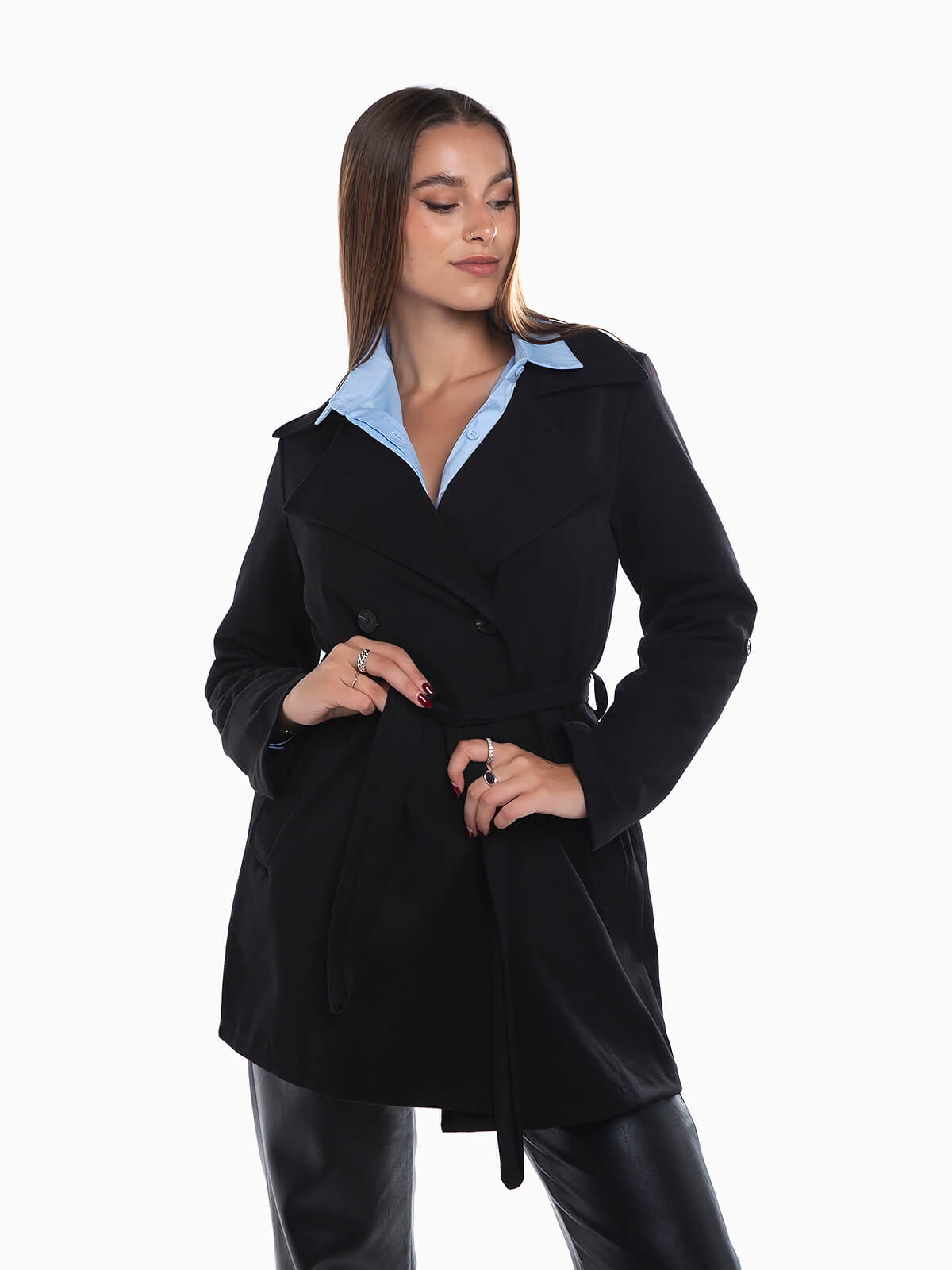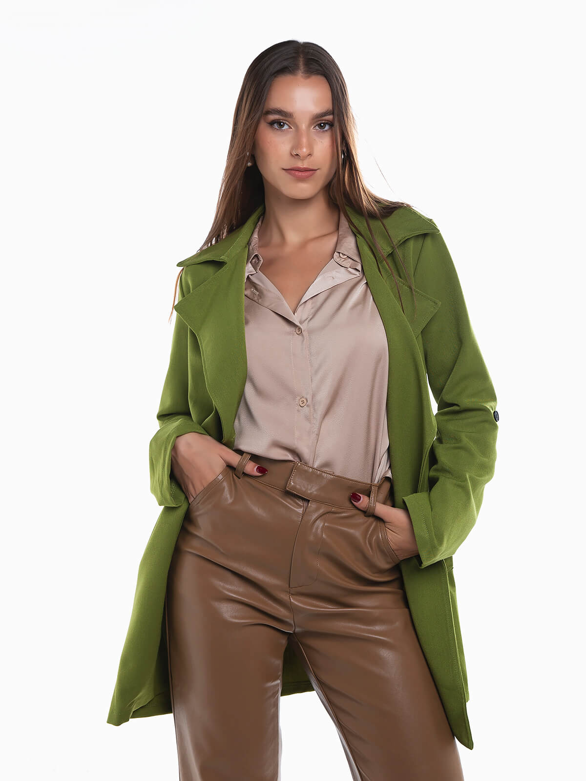 Gabardine em tecido com mistura viscose para acabamento fluído. Trench com cinto para ajustar. Manga comprida e presilhas. Gola de abas e lapelas. Aperto cruzado de botões. 2 bolsos.