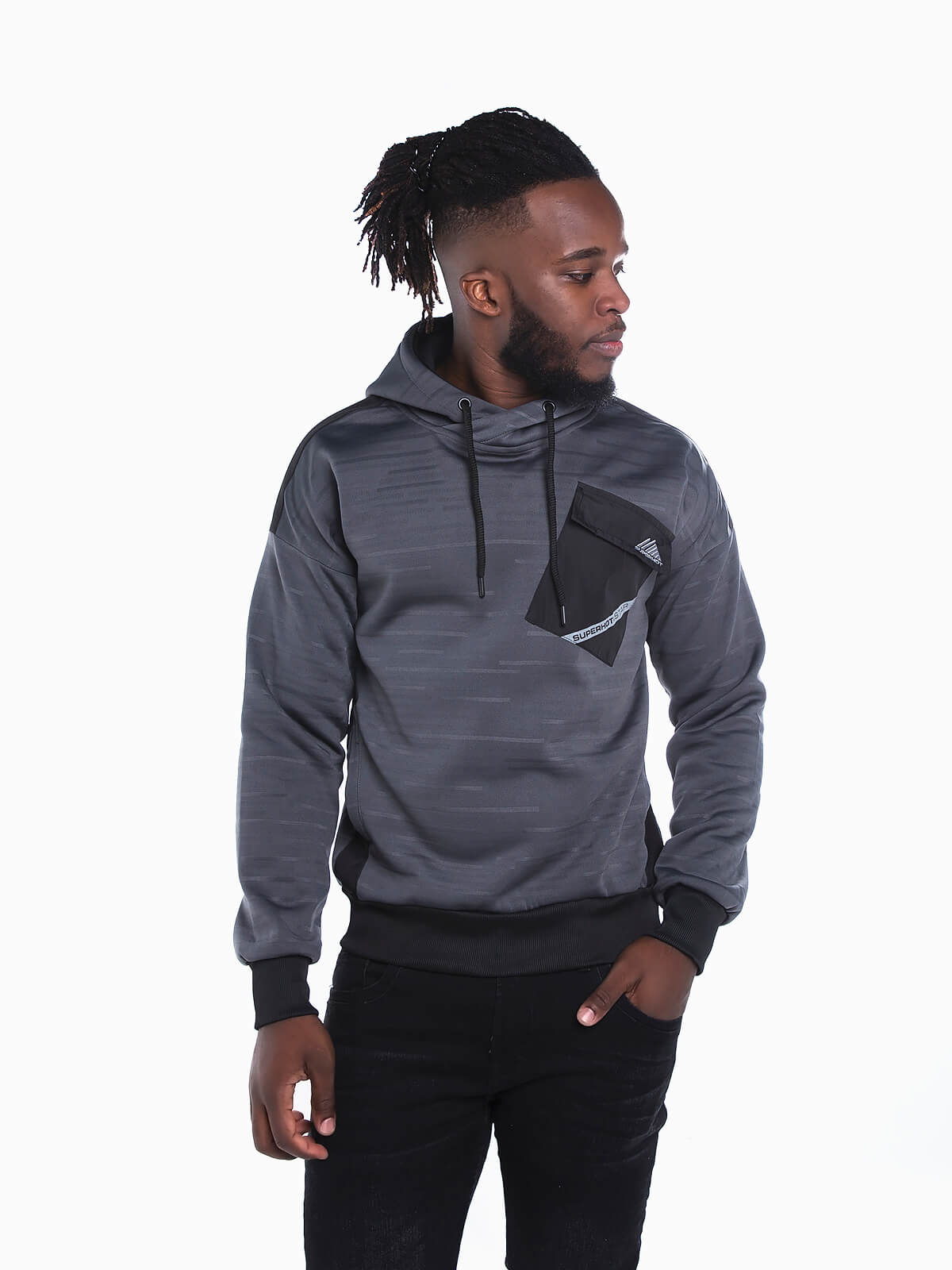 Hoodie cardada com bolso aplicado no peito. Sweatshirt capuz com cordão para ajustar. Manga comprida. 2 bolsos laterais. Extremidades elásticas.