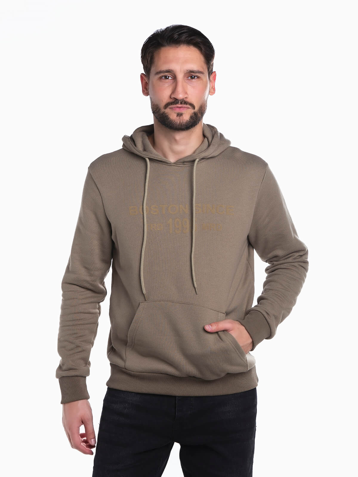 Hoodie com estampado de letras em borracha saliente. Sweatshirt com capuz e cordão para ajustar. Interior cardado e bolso canguru.