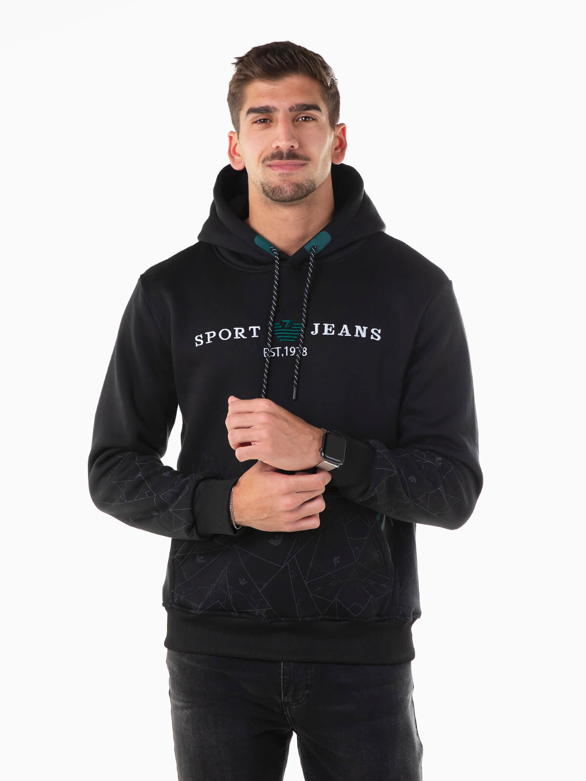 Hoodie felpa de algodão com pormenores bordados no peito. Sweatshirt com capuz e cordão para ajustar. Interior cardado. Bolso canguru.