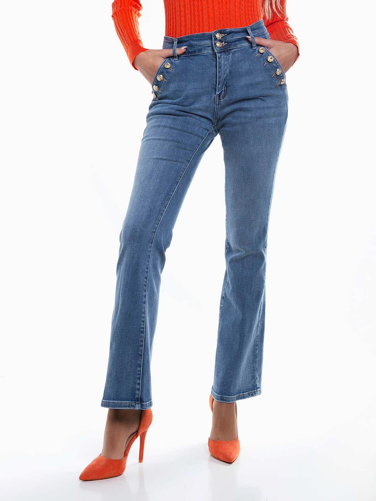 Início Mulher Calças de Ganga Jeans flare botões dourados
