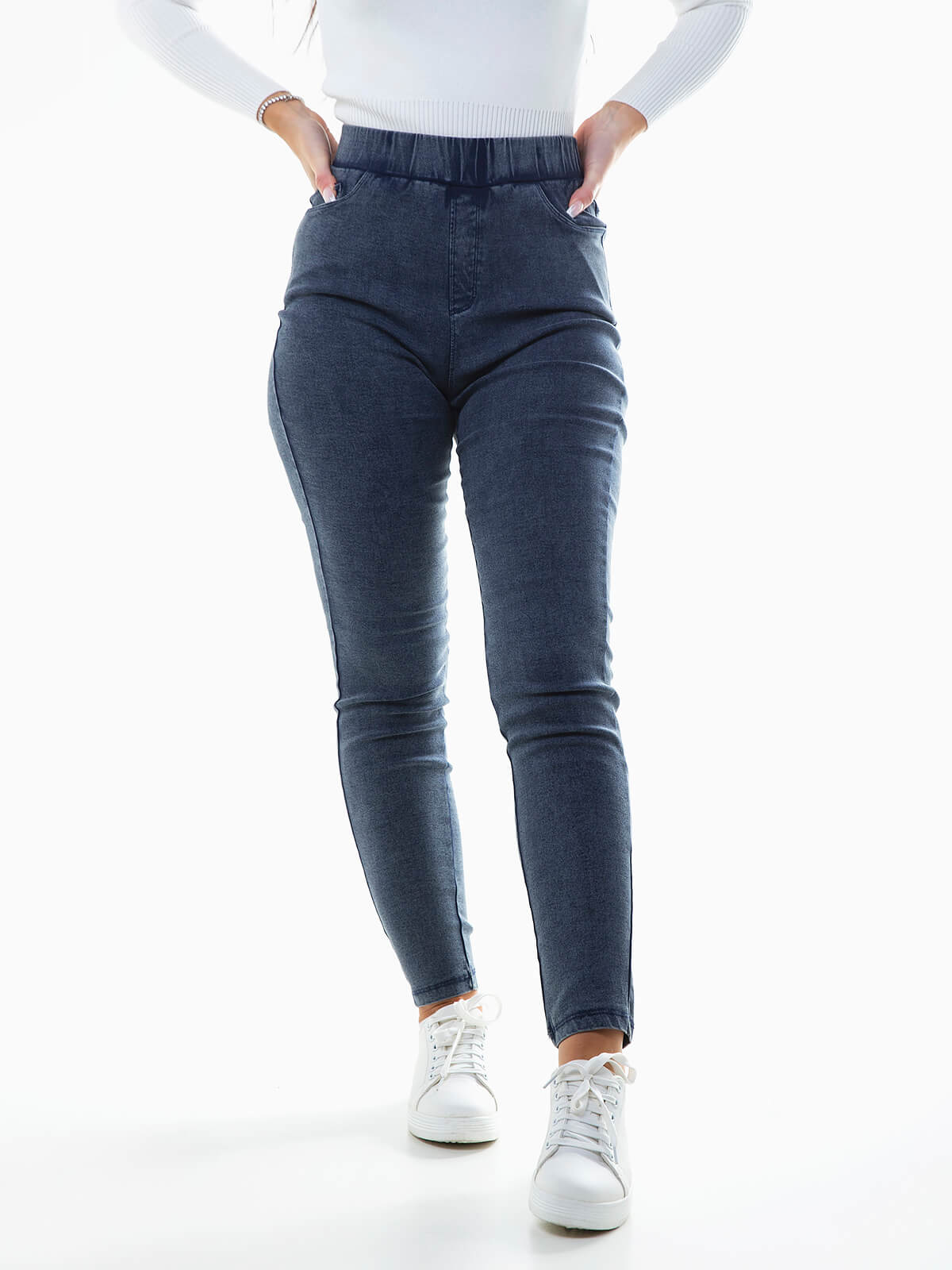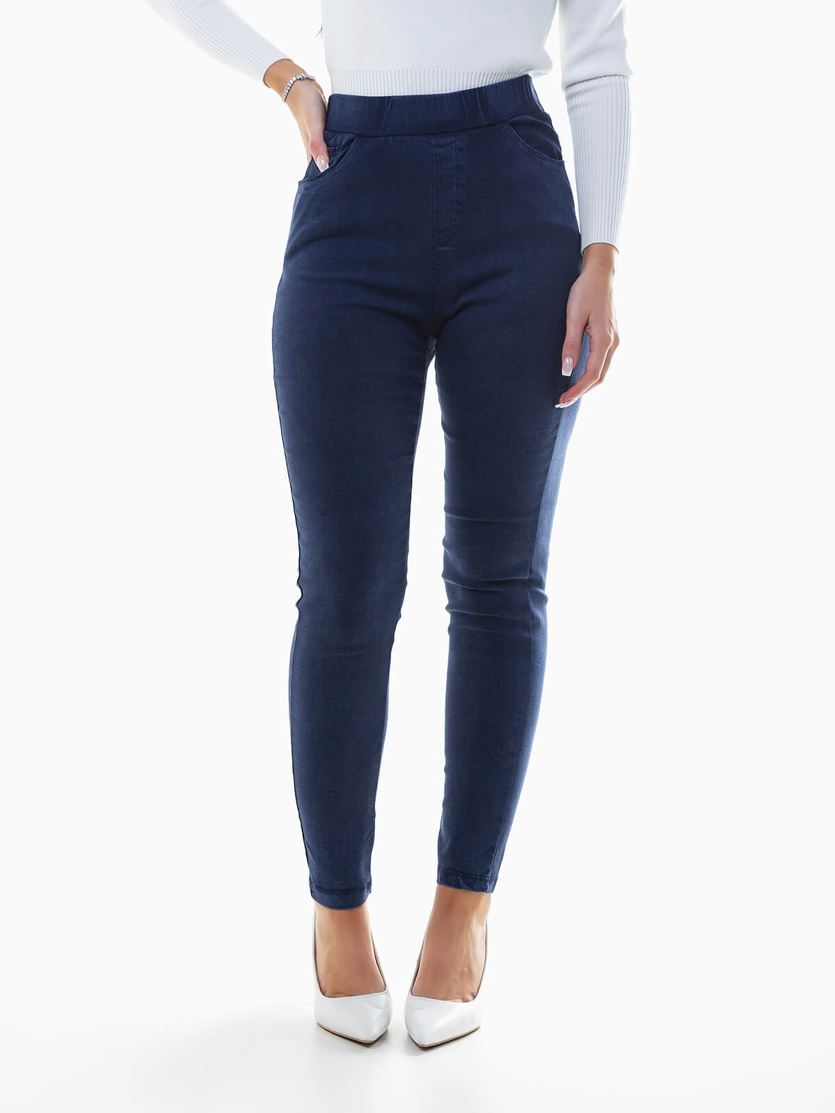 Jeggings elásticas de cintura alta para senhora. Jeggings com 5 bolsos.