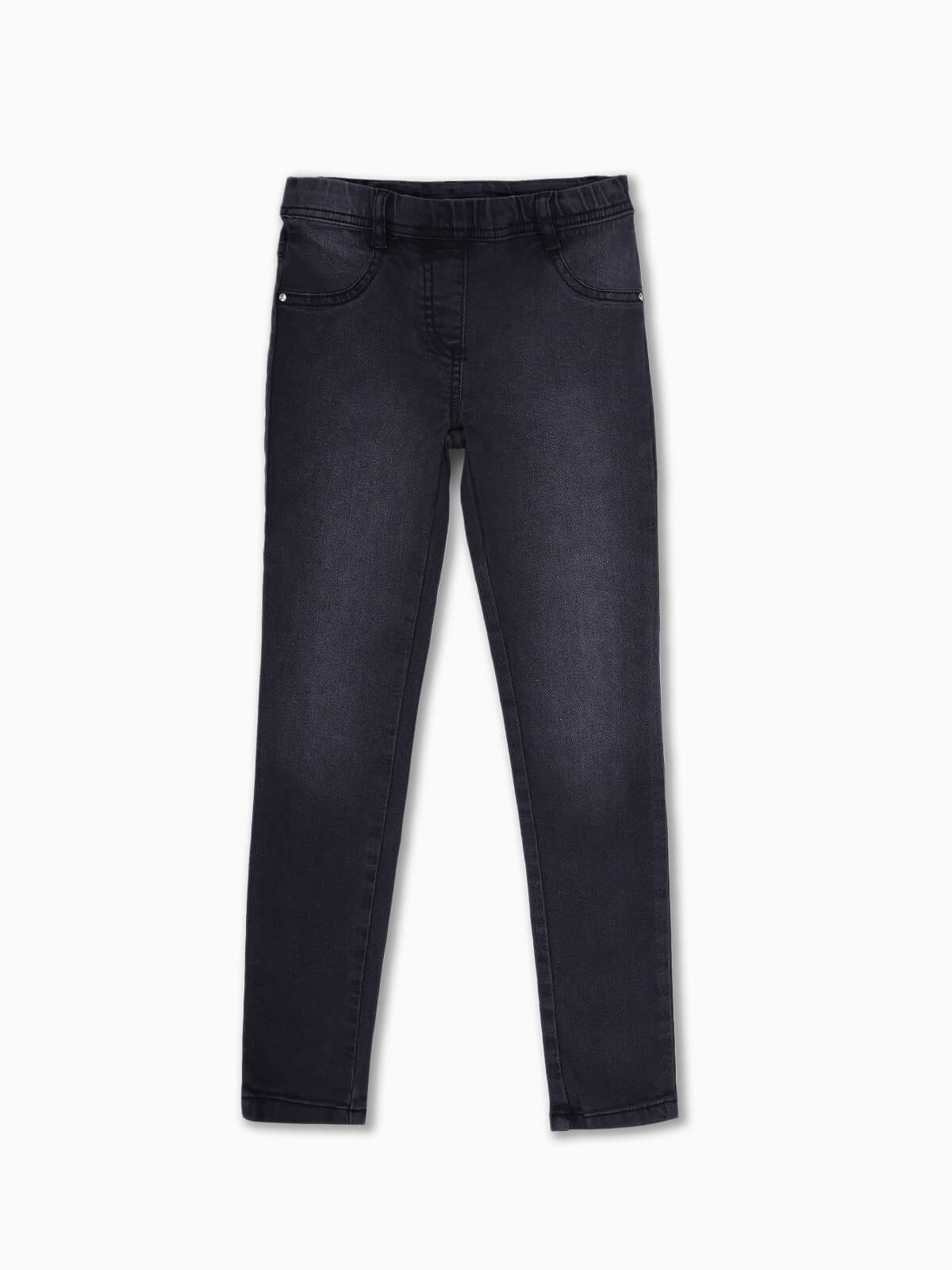 Jeggings elásticas para menina. Jeggings de cintura elástica com ajustador. Presilhas. 2 bolsos atrás.