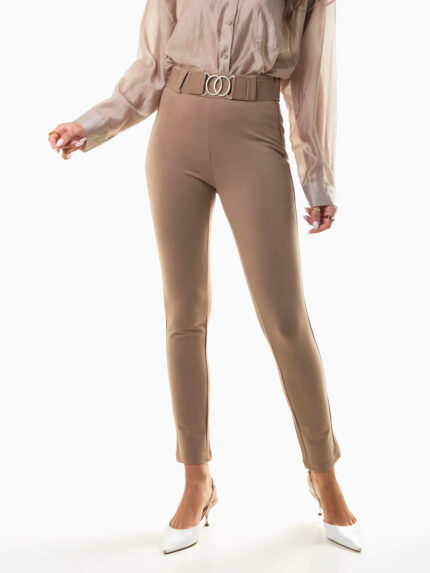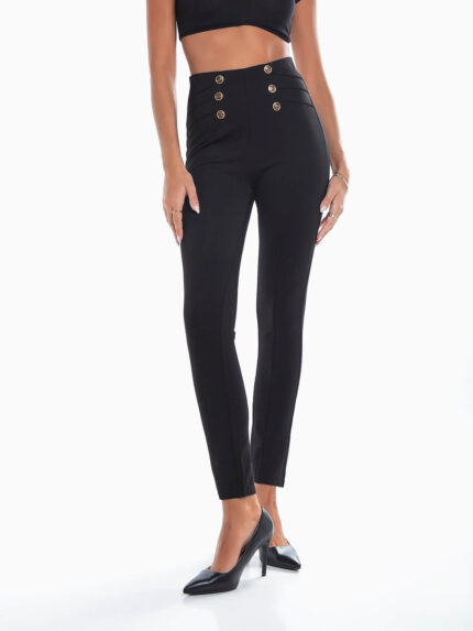 Leggings à boca de sino com abertura na base para senhora. Leggings elástica de cintura alta.