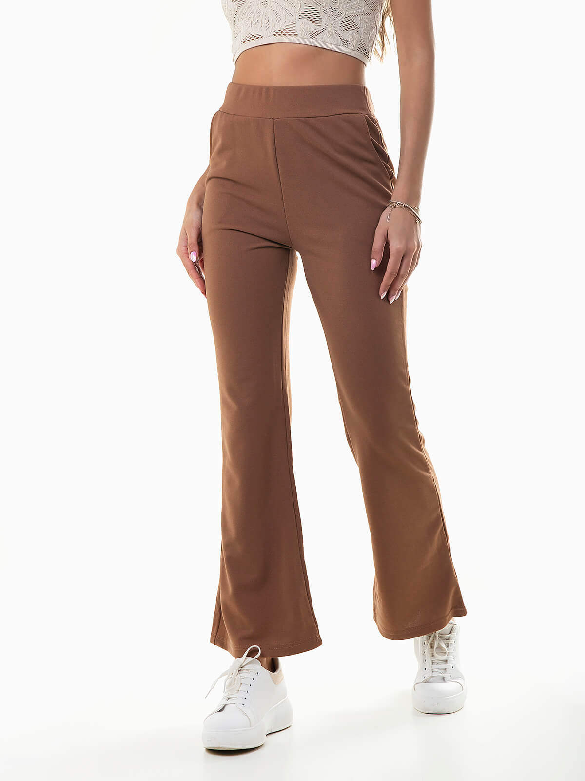 Leggings à boca de sino de cintura alta para senhora. Leggings elásticas com dois bolsos.