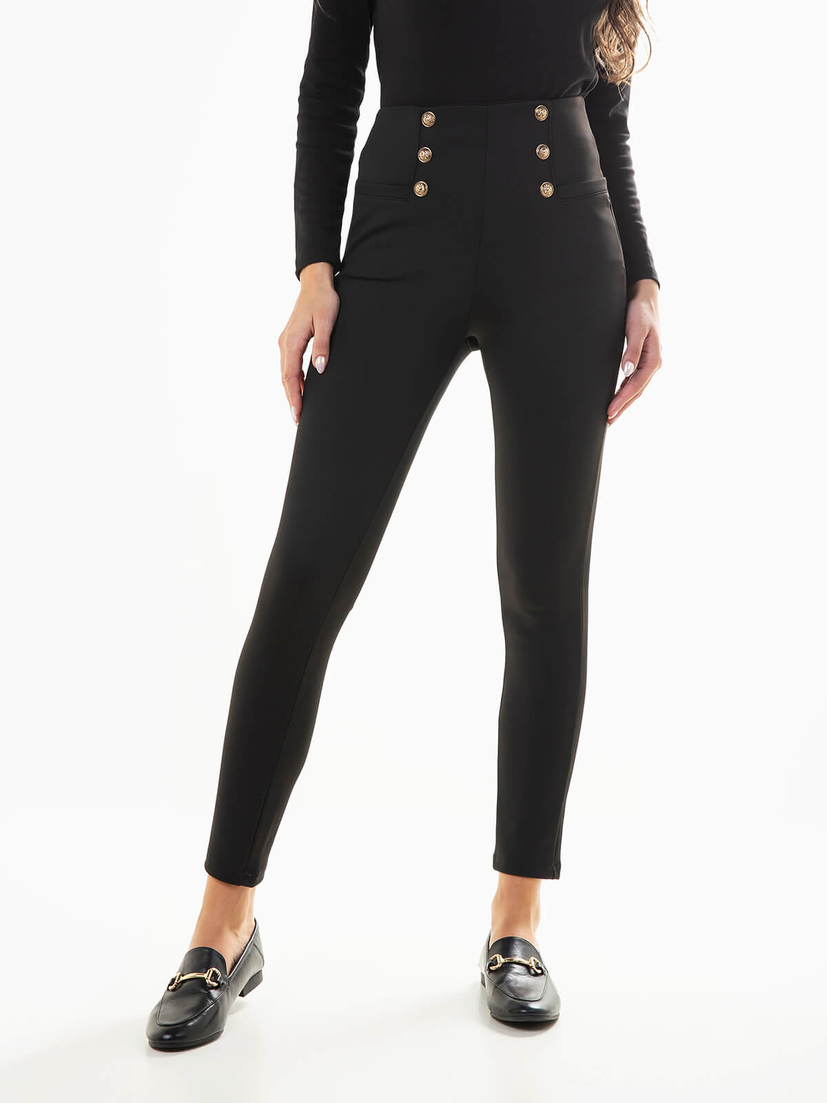 Leggings de cintura alta com botões dourados. Leggings para senhora com interior cardado e 2 bolsos.