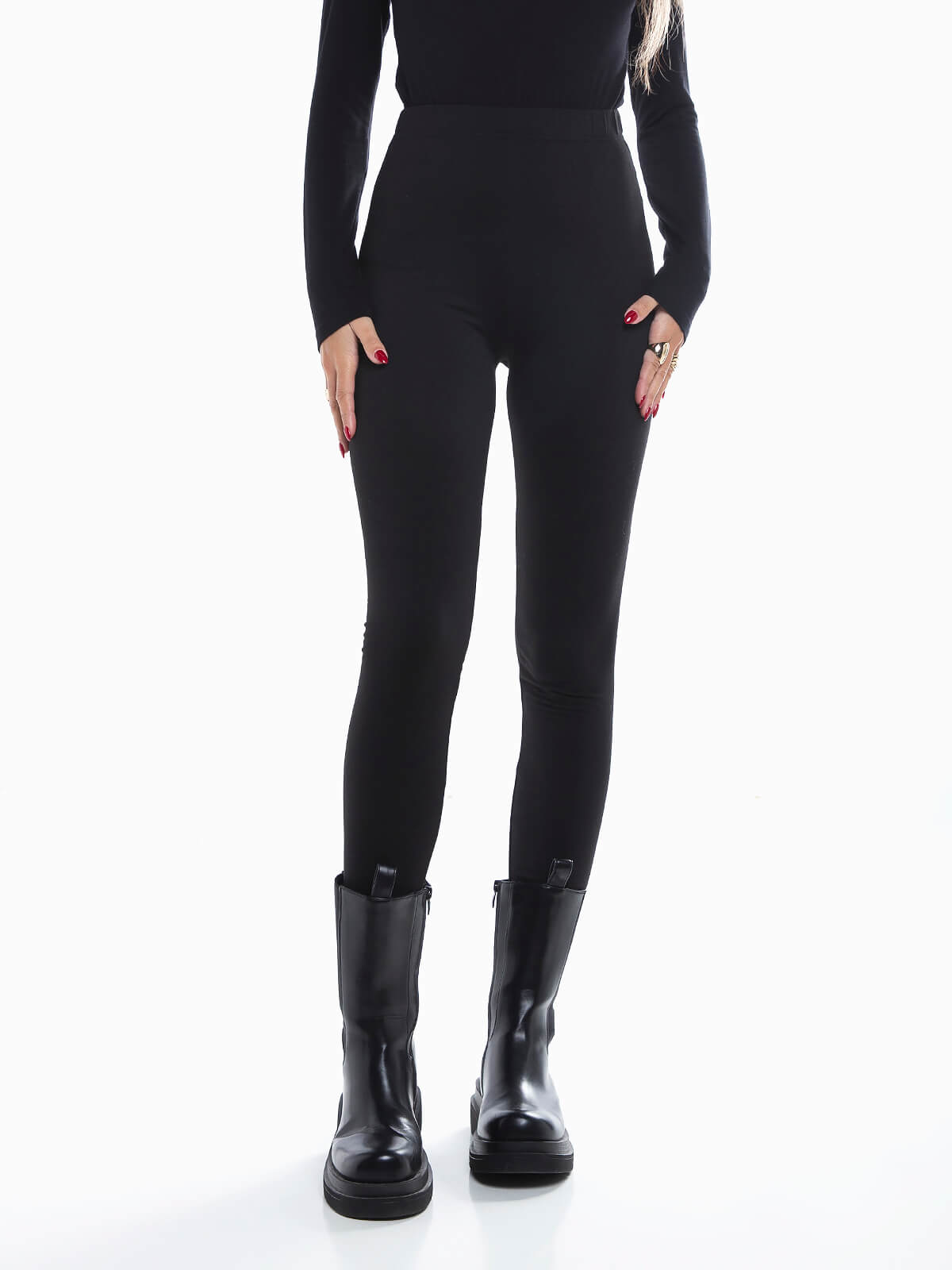 Leggings para senhora com interior cardado. Leggings de cintura alta.