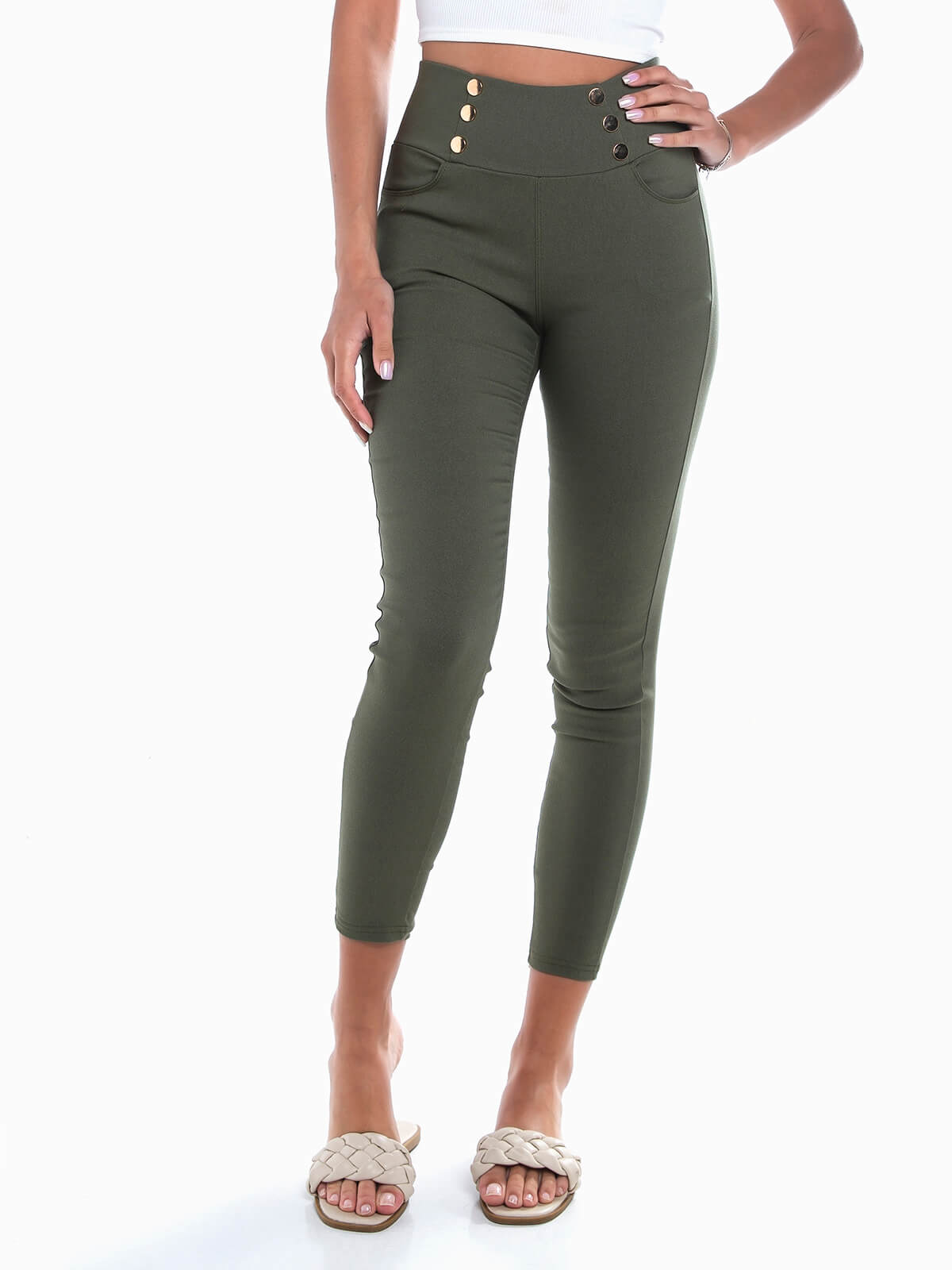 Início Mulher Leggings Leggings cintura alta 6 botões