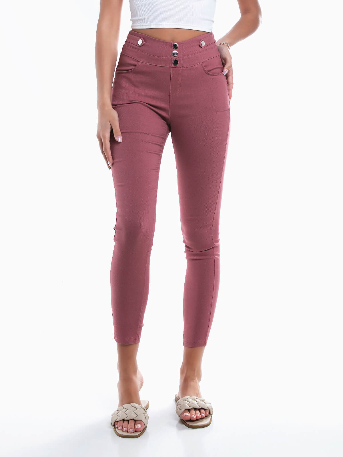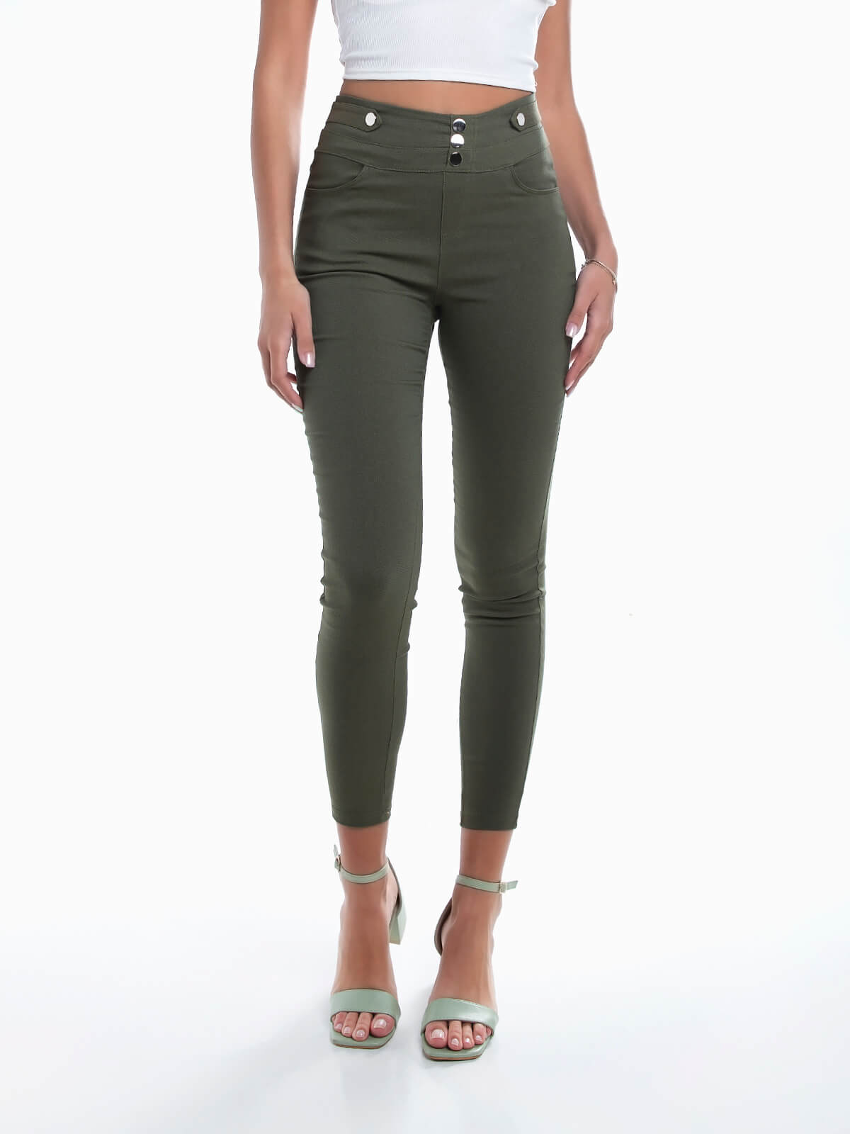 Início Mulher Leggings Leggings cintura alta com botões