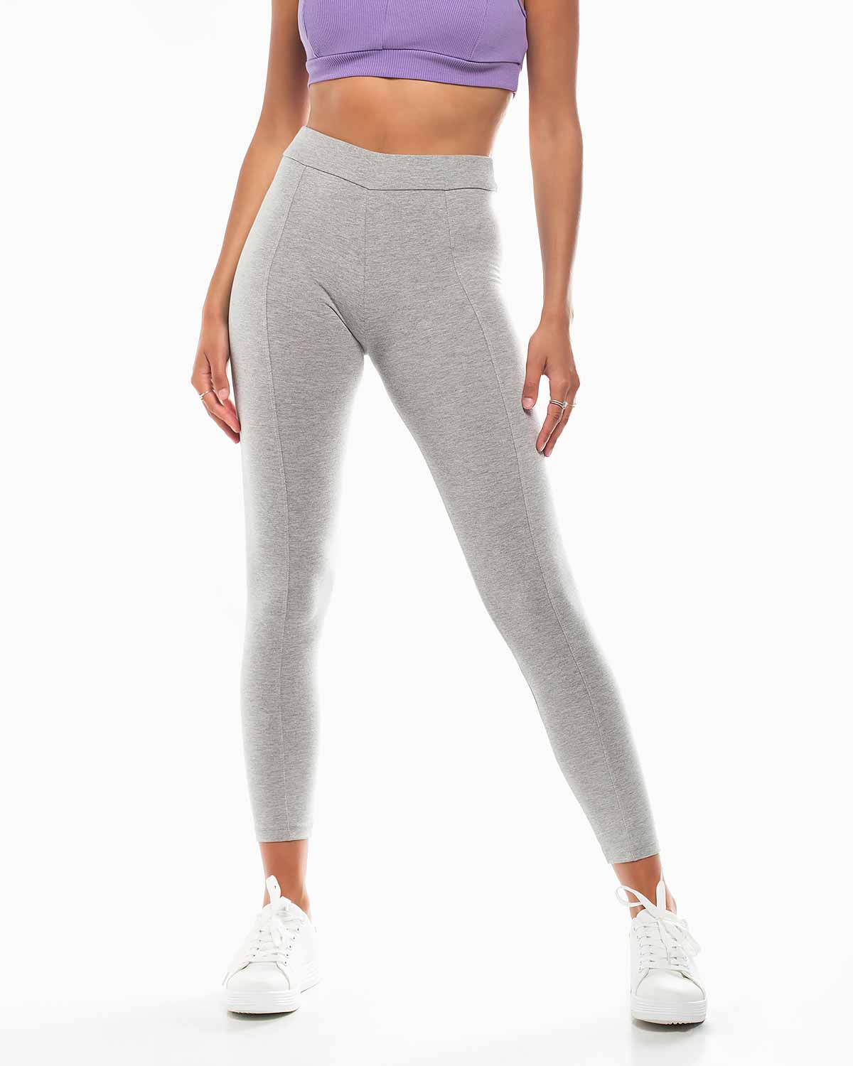 Leggings cintura alta com costura na frente. Leggings sem carda com elasticidade.
