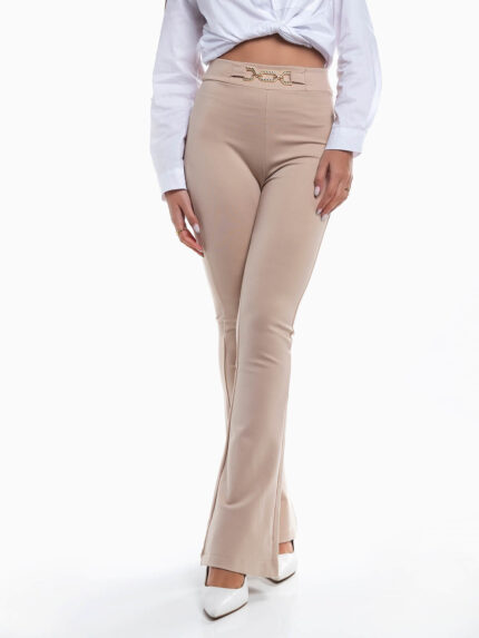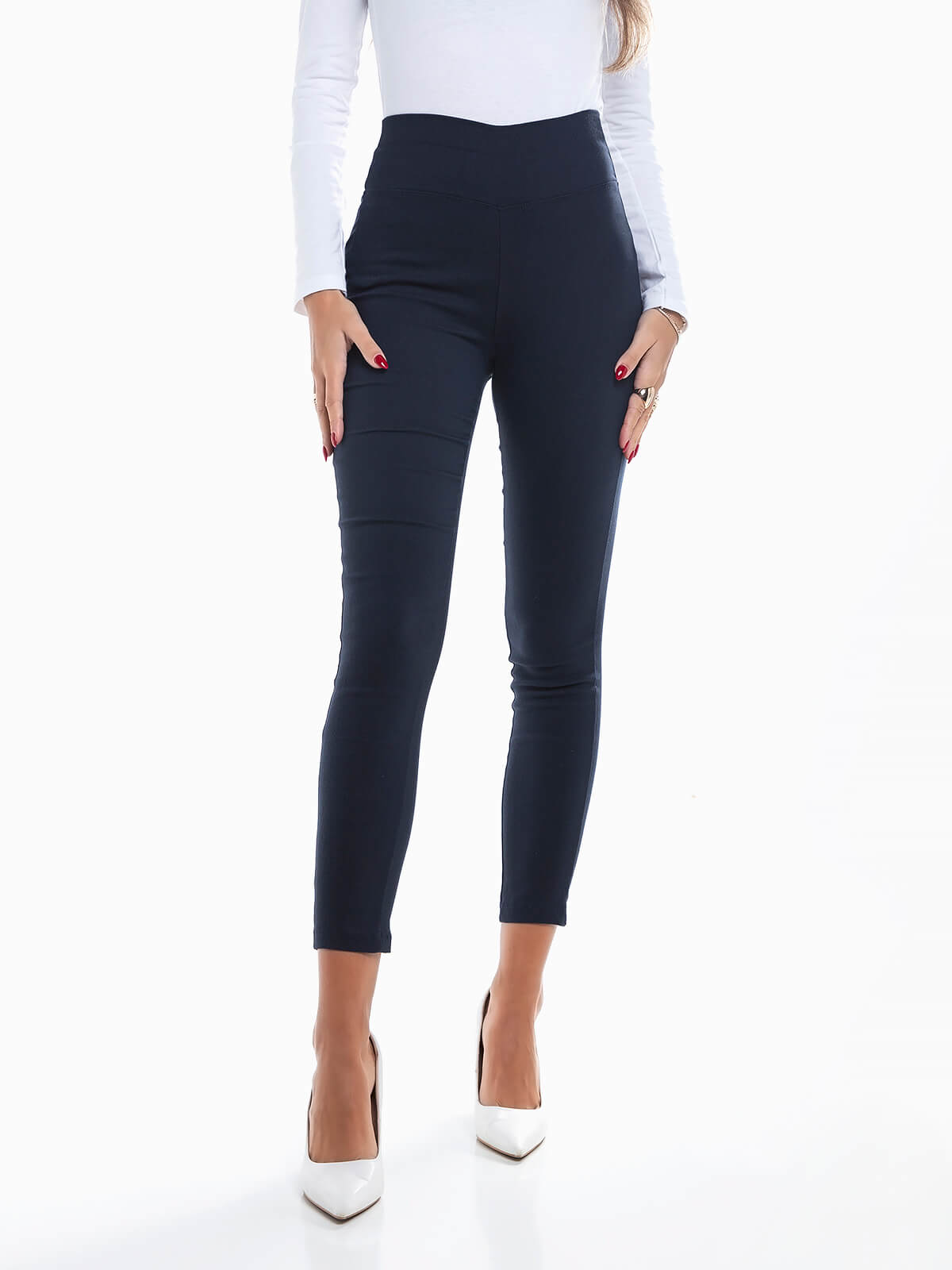 Leggings cintura alta em tecido com mistura algodão. Leggings elásticas para senhora.