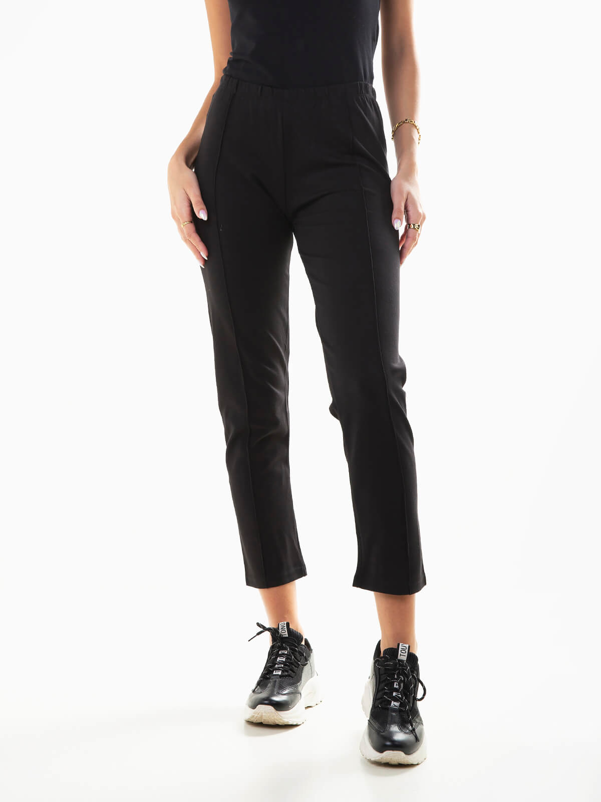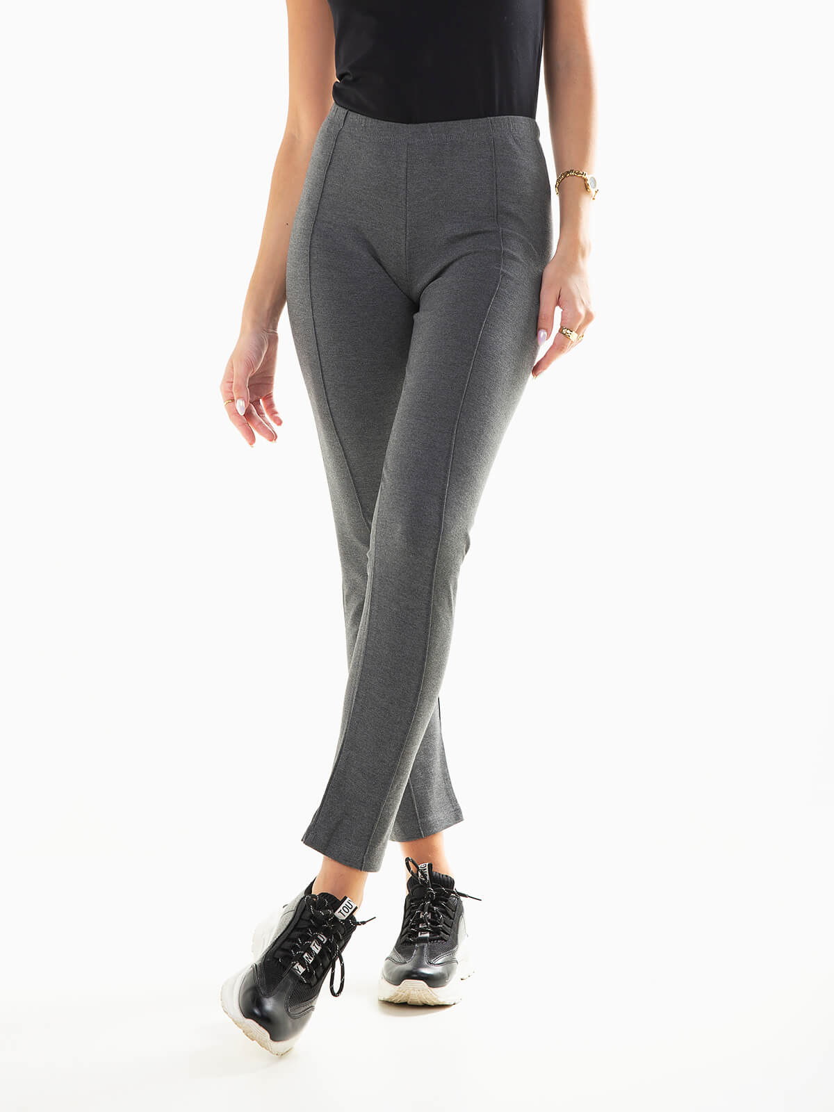 Leggings para senhora com costura frontal reforçada. Leggings de cintura alta elástica.