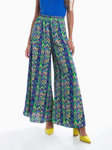 Leggings largas às riscas confecionadas em tecido mistura de viscose para maior conforto. Calças curtas de cintura alta elástica com 2 bolsos.