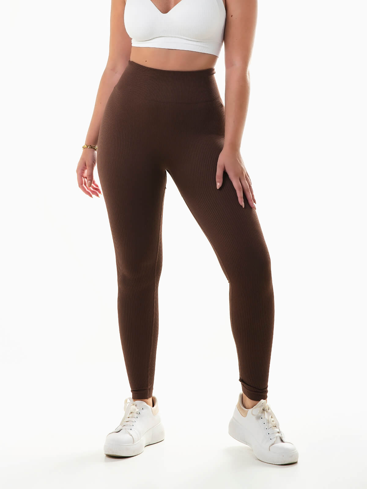 Leggings desportivas caneladas com efeito modelador para senhora. Leggings ‘perfect peach’ com cintura alta elástica.