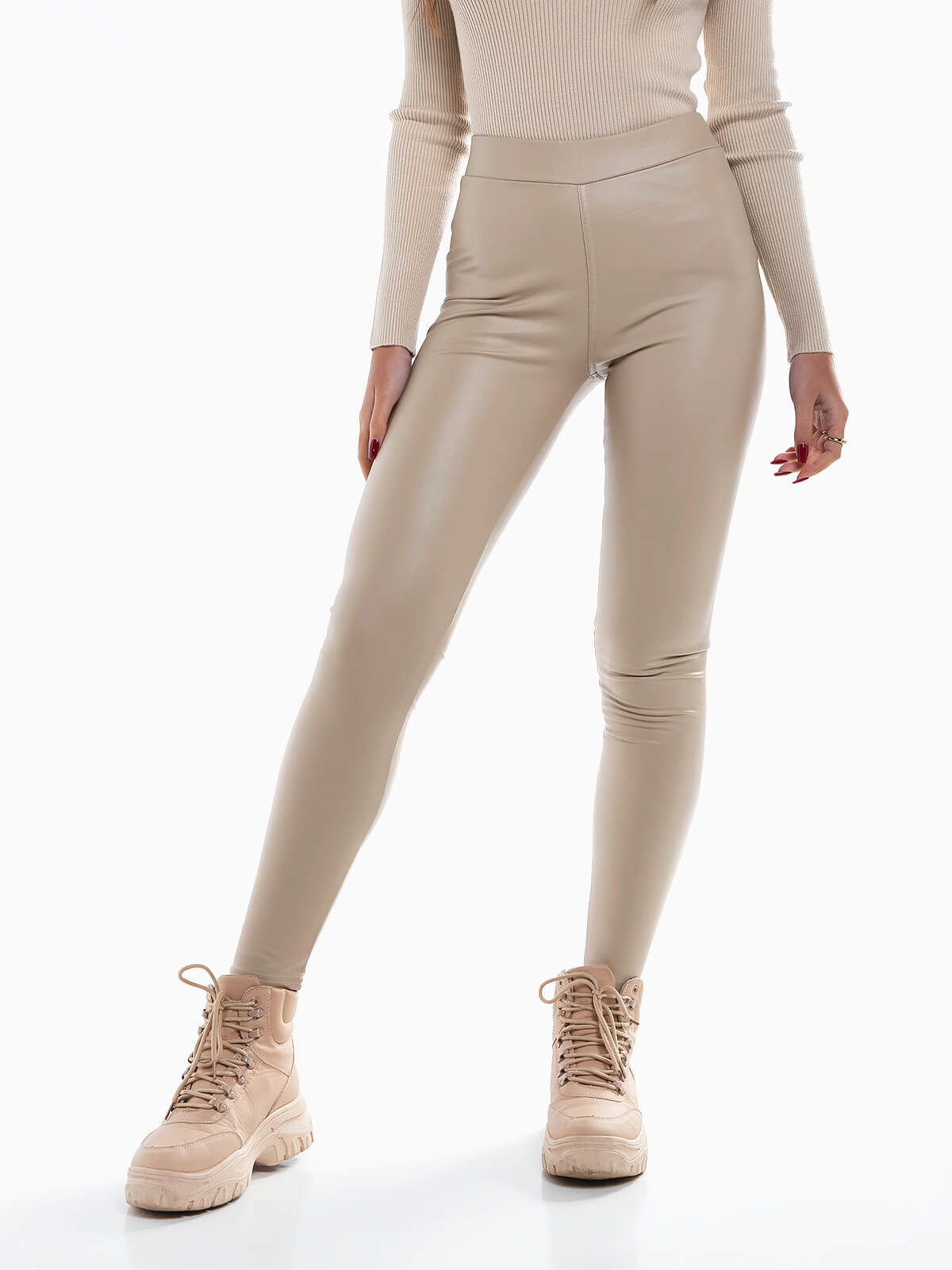 Leggings efeito pele com cintura alta para senhora. Leggings elásticas com interior cardado.