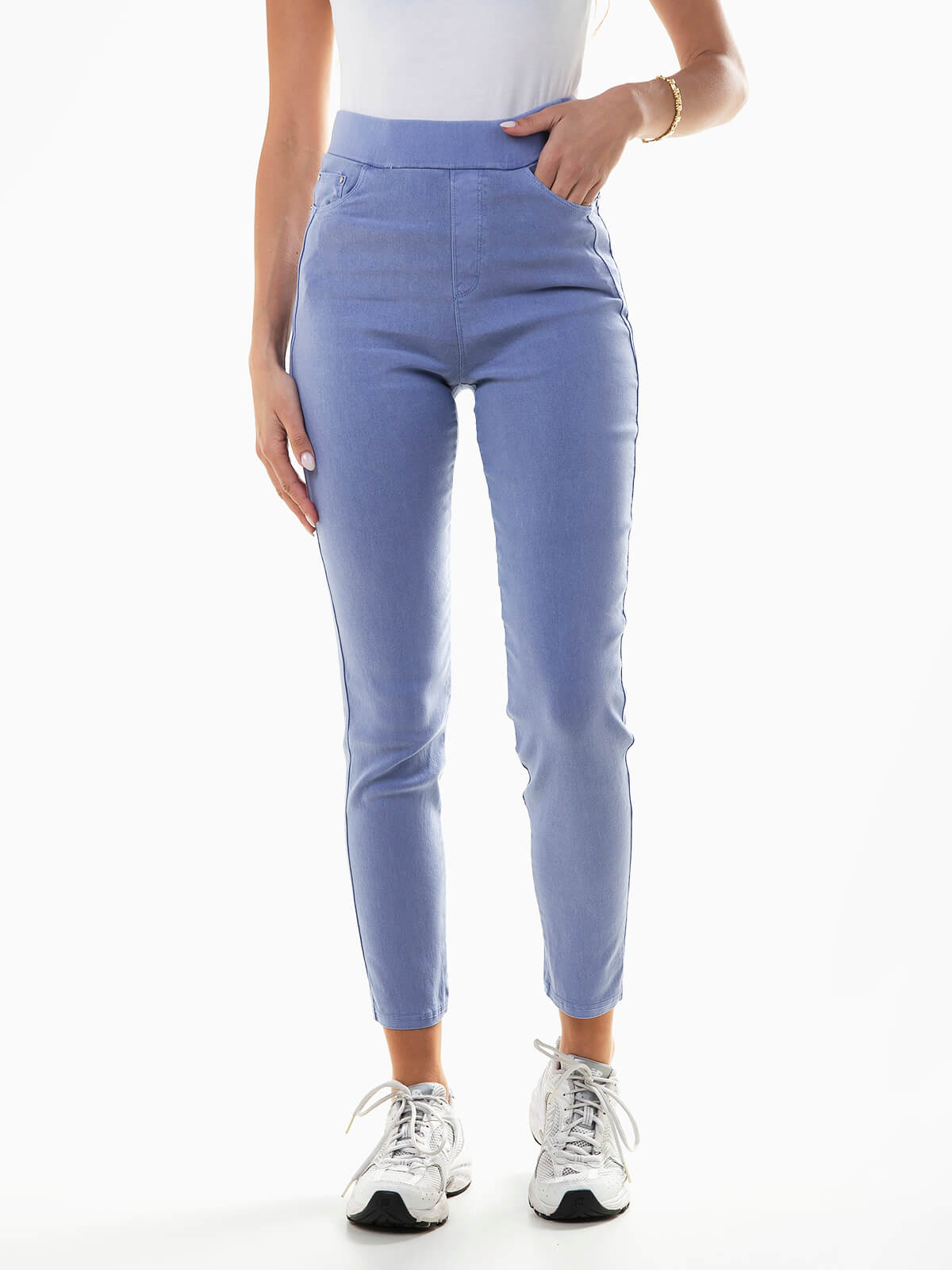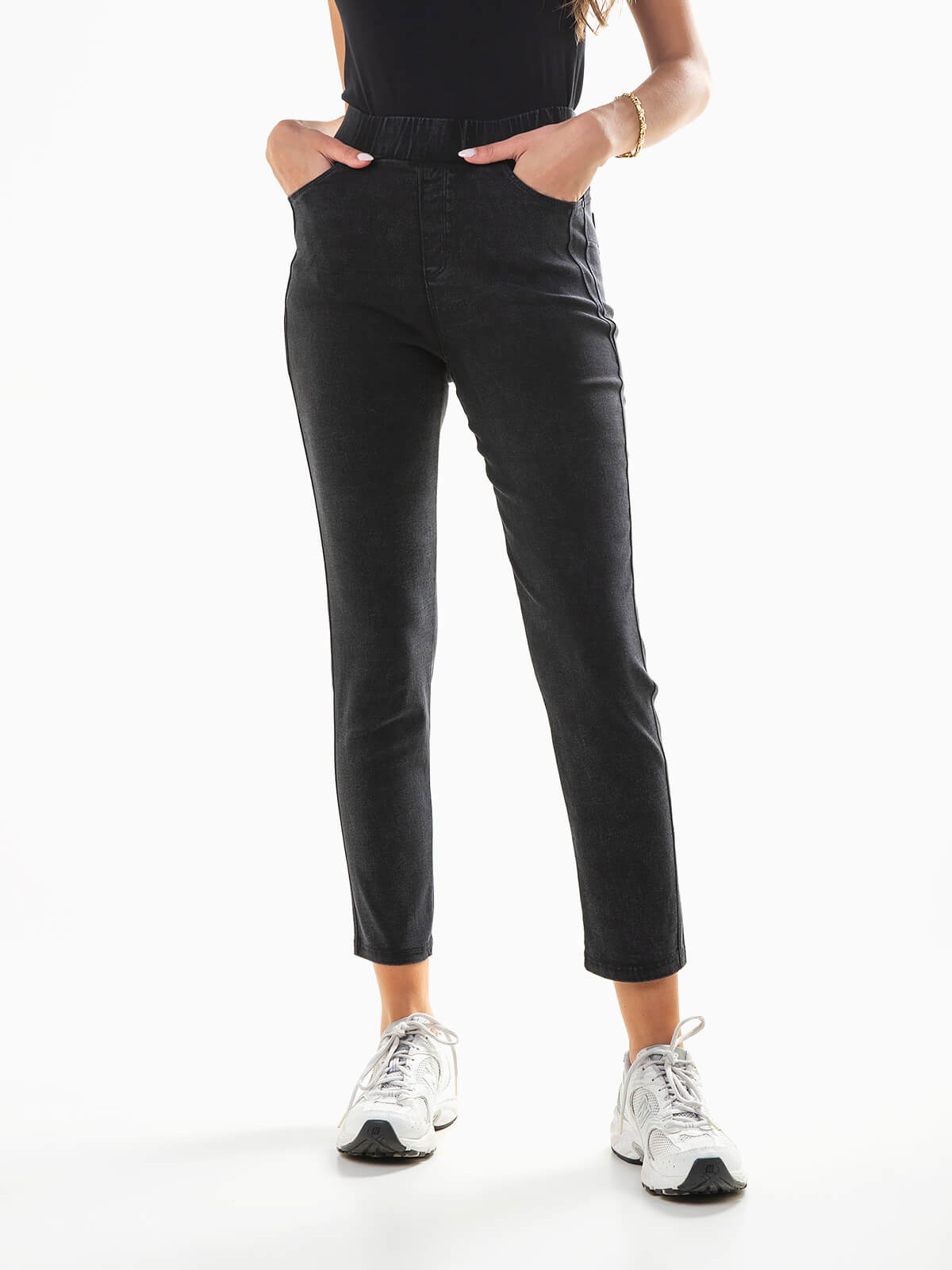 Leggings de cintura alta com efeito push-up para senhora. Leggings elásticas com 5 bolsos.