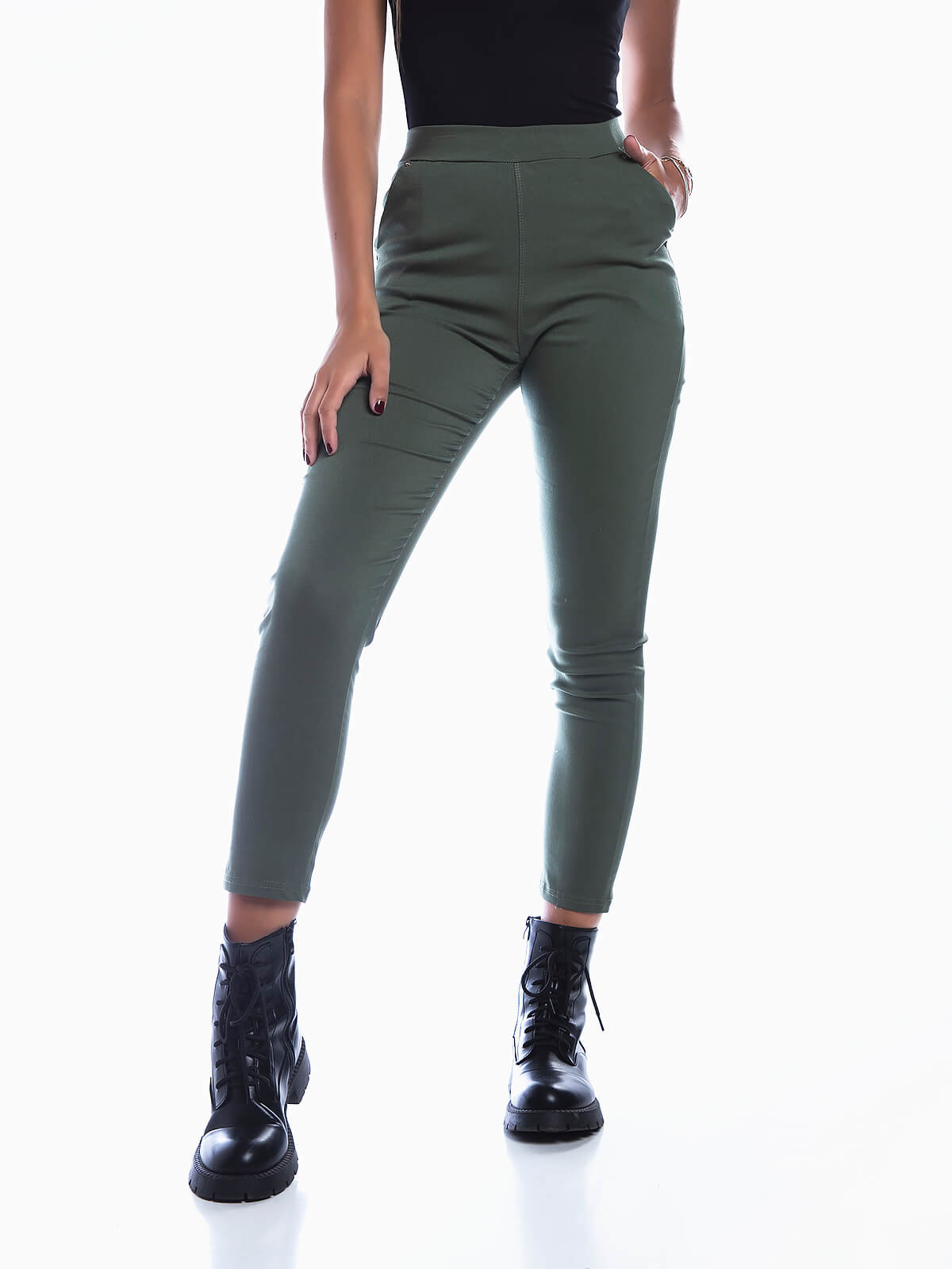 Leggings elásticos com bolsos na frente e atrás. Leggings para senhora de cintura alta.