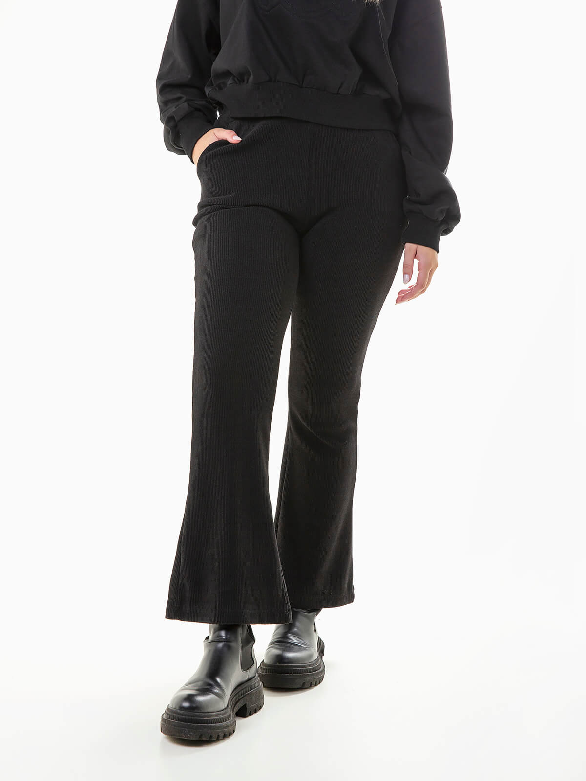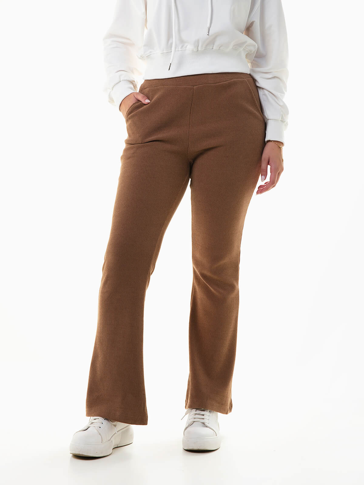 Leggings flare de bombazina sem carda. Leggings para mulher de cintura alta elástica com 2 bolsos.