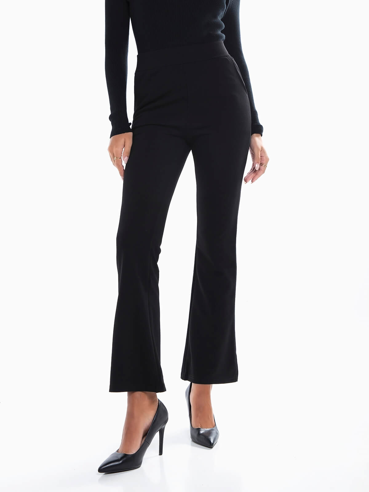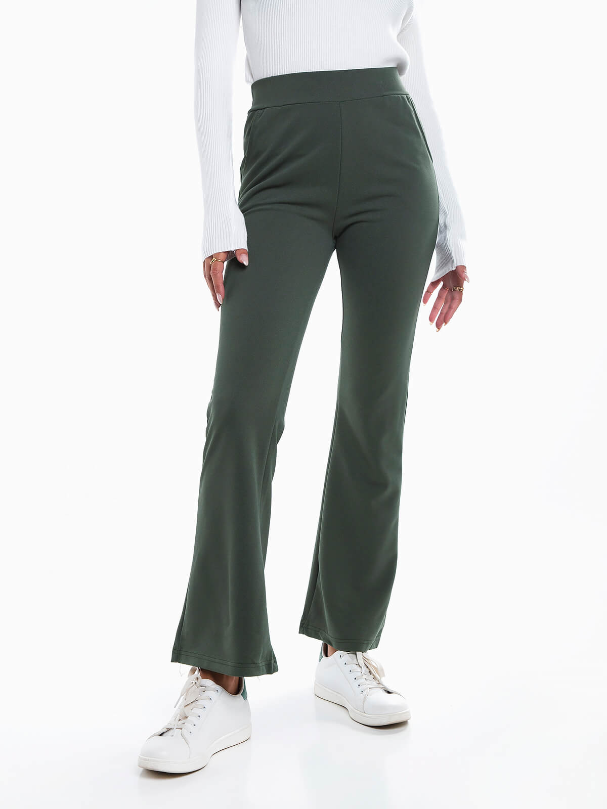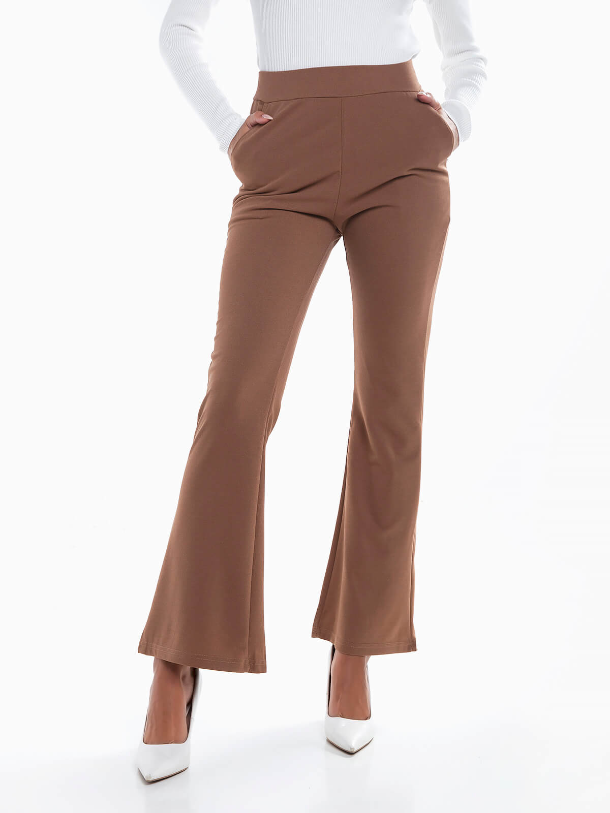 Leggings flare básicas para senhora. Leggings de cintura alta elástica com 2 bolsos laterais.