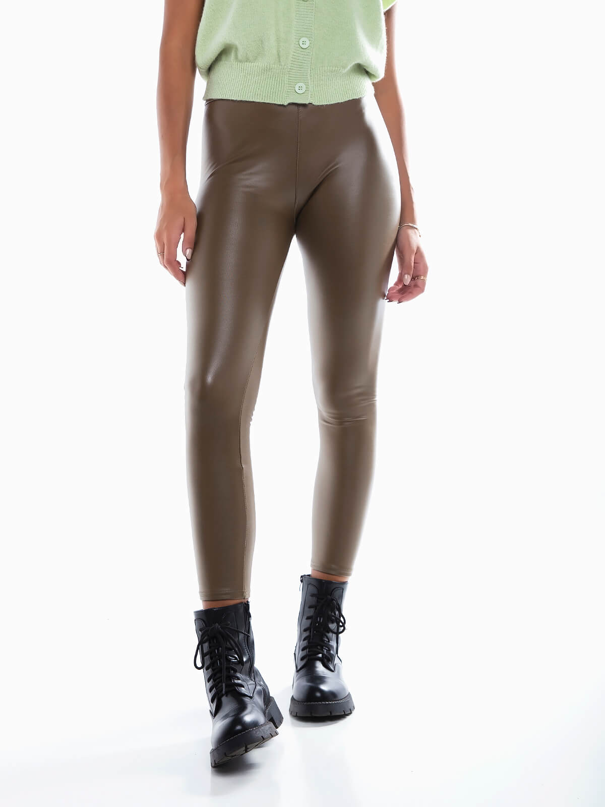 Leggings em pele sintética cardadas para senhora. Leggings de cintura alta elástica.