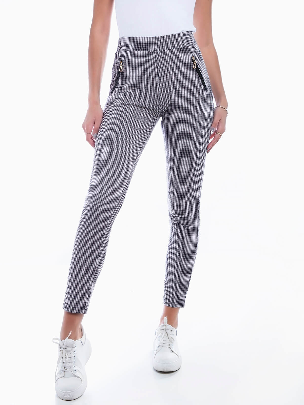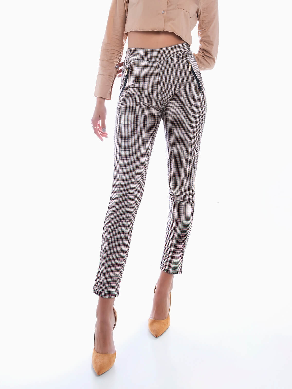 Leggings em xadrez pied-de-poule com 4 bolsos. Leggings de cintura alta elástica.